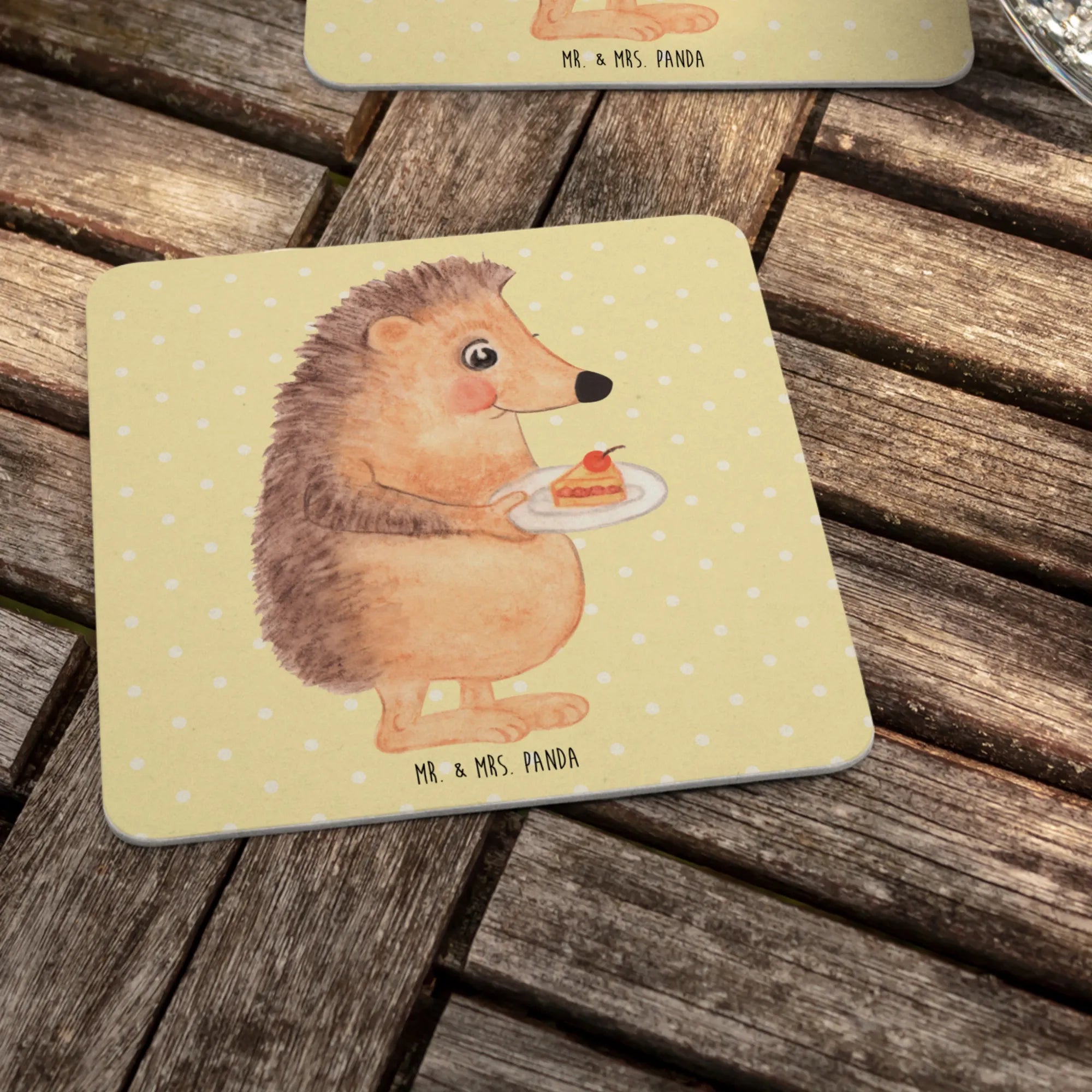 Holen auch Du Dir ein Stück Kuchenfreude nach Hause mit dem "Igel mit Kuchenstück" Bierdeckel von Mr. & Mrs. Panda. Ein tolles Geschenk für Backliebhaber, Kuchenfans und alle, die das Leben voller Farben und guter Laune genießen möchten!