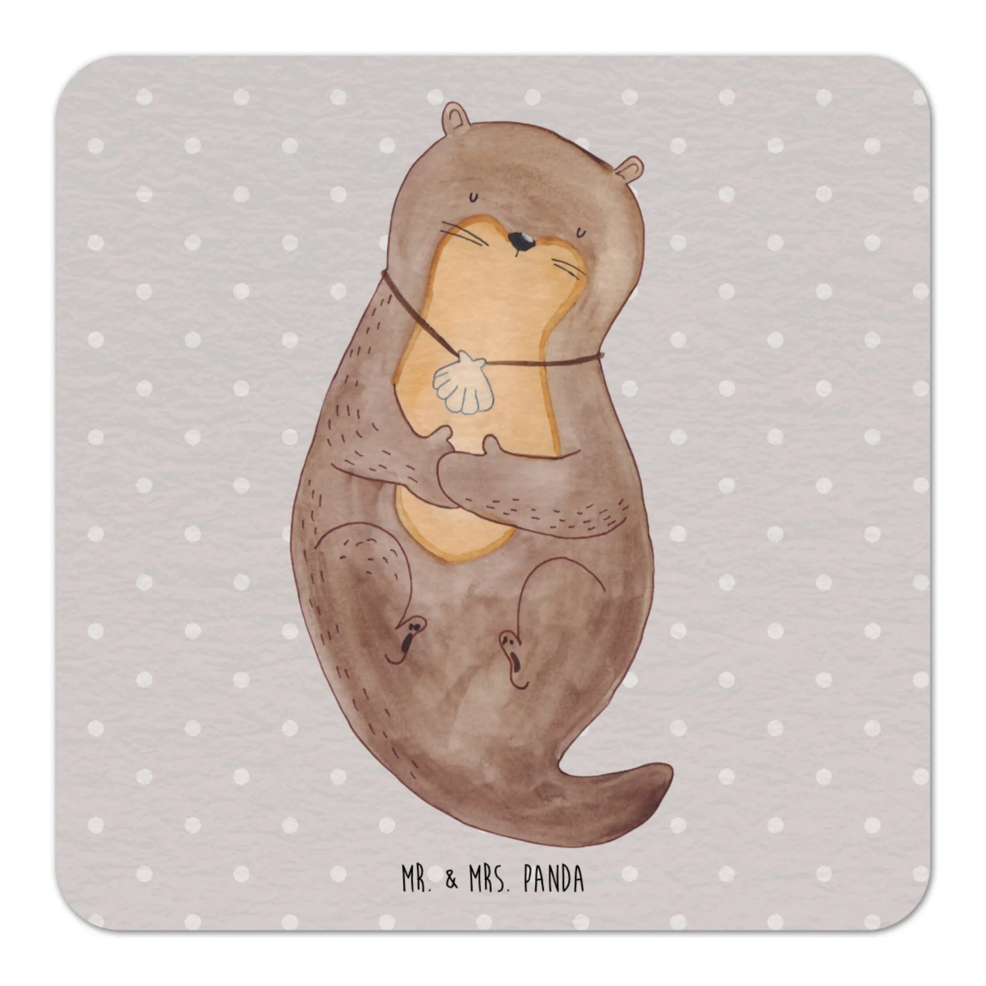 Wenn du auf der Suche nach dem perfekten Gastgeschenk für deine Hochzeit oder ein unvergessliches Mitbringsel für die nächste Feier bist, dann ist unser wunderschöner quadratischer Bierdeckel "Otter mit Muschelmedaillon" aus der Otter-Kollektion von Mr. & Mrs. Panda genau das richtige für dich!