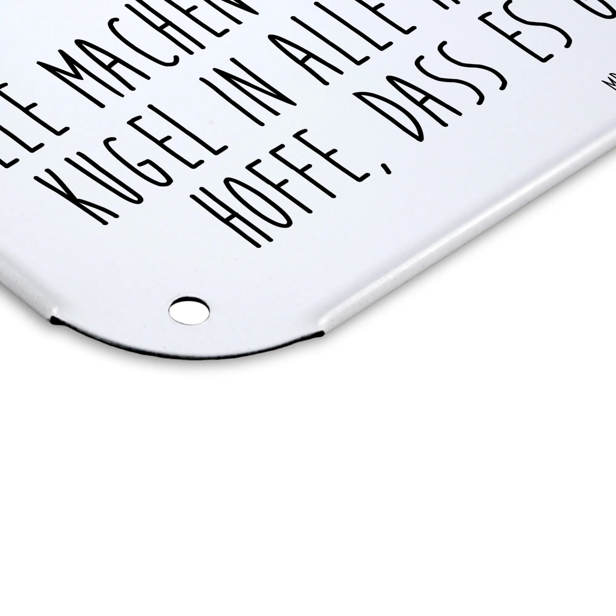 Das Blechschild hat die perfekte Größe von DIN A4 und besteht aus hochwertigem, edlen Stahlblech, das ebenso langlebig ist wie schön. Es ist mit 4 Bohrungen versehen, sodass eine einfache Anbringung an Wand oder Tür möglich ist. Eine spezielle seidenmatte Oberfläche verleiht dem Schild die nötige Eleganz, während die abgerundeten Ecken und umgefalzten Kanten nicht nur für Sicherheit sorgen, sondern auch eine besondere Note verleihen.