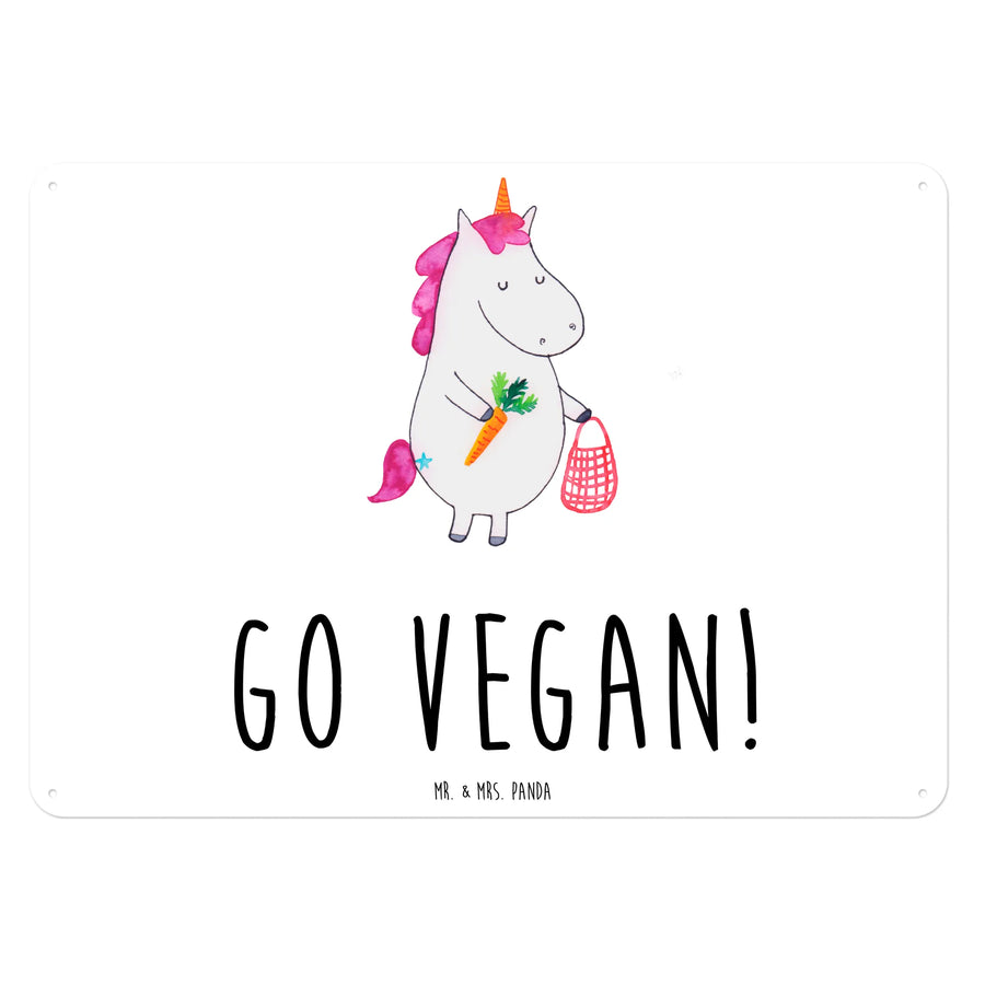 Das wunderschöne Blechschild "Einhorn Vegan" von Mr. & Mrs. Panda ist das perfekte Geschenk für all diejenigen, die eine Leidenschaft für vegane Ernährung und zauberhafte Einhörner teilen.