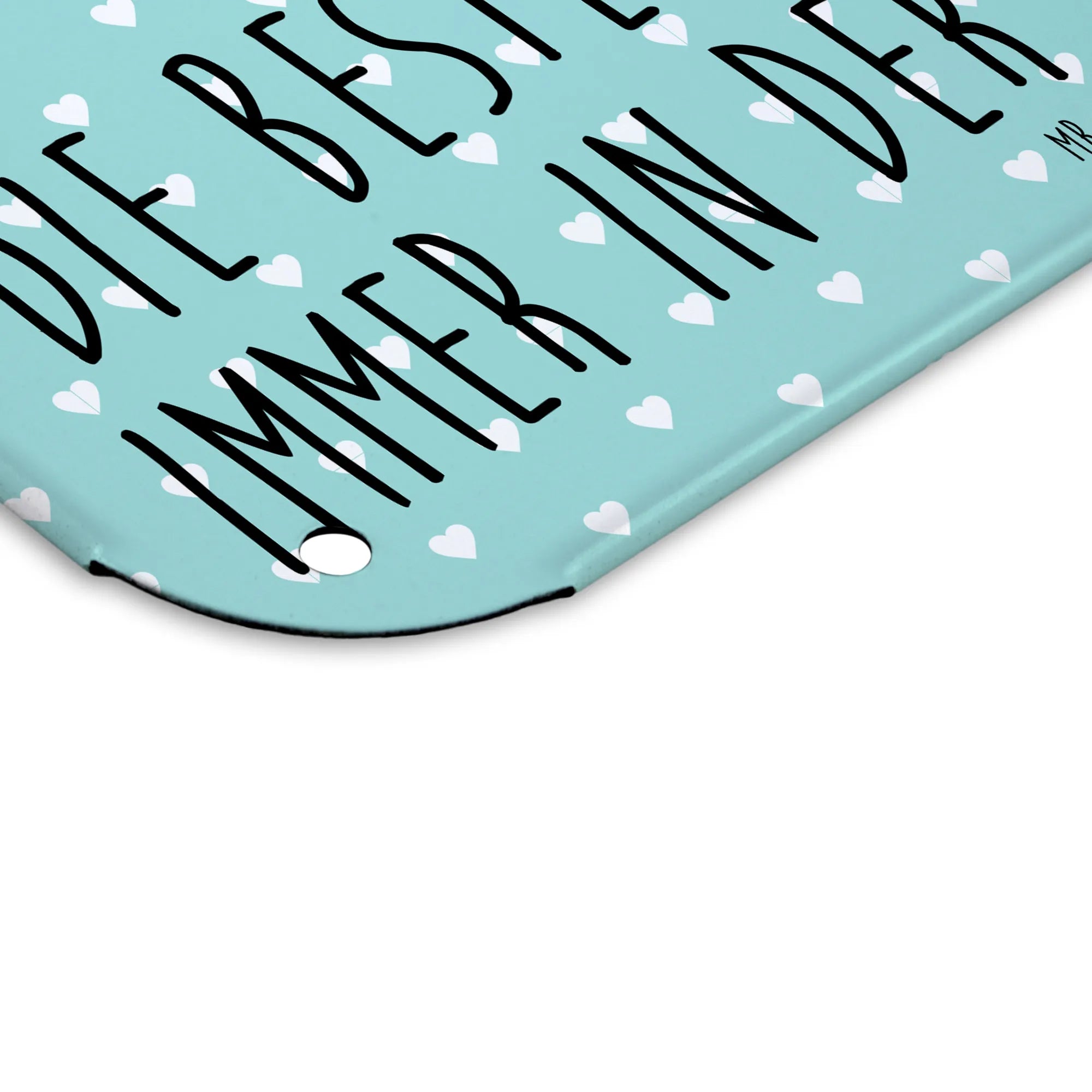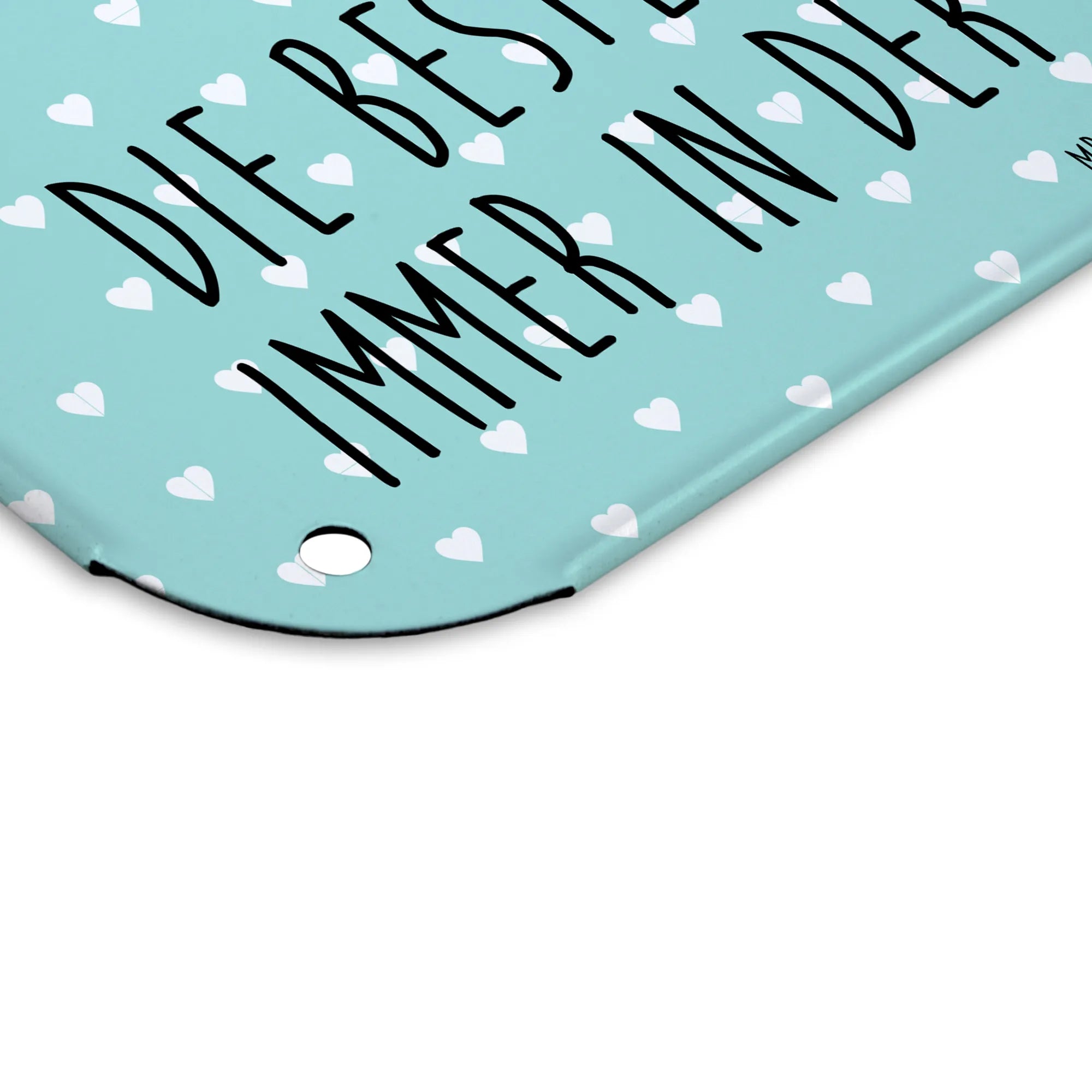 Das Schild eignet sich wunderbar als Geschenk zu verschiedenen Anlässen wie Geburtstagen, Einweihungsfeiern oder einfach als kleine Aufmerksamkeit für einen lieben Menschen. Dank seiner edlen, seidenmatten Oberfläche und den abgerundeten Kanten wird es zum stilvollen Eye-Catcher in jedem Raum. Außerdem ist es aus hochwertigem Stahlblech gefertigt, was das Schild besonders robust und langlebig macht.