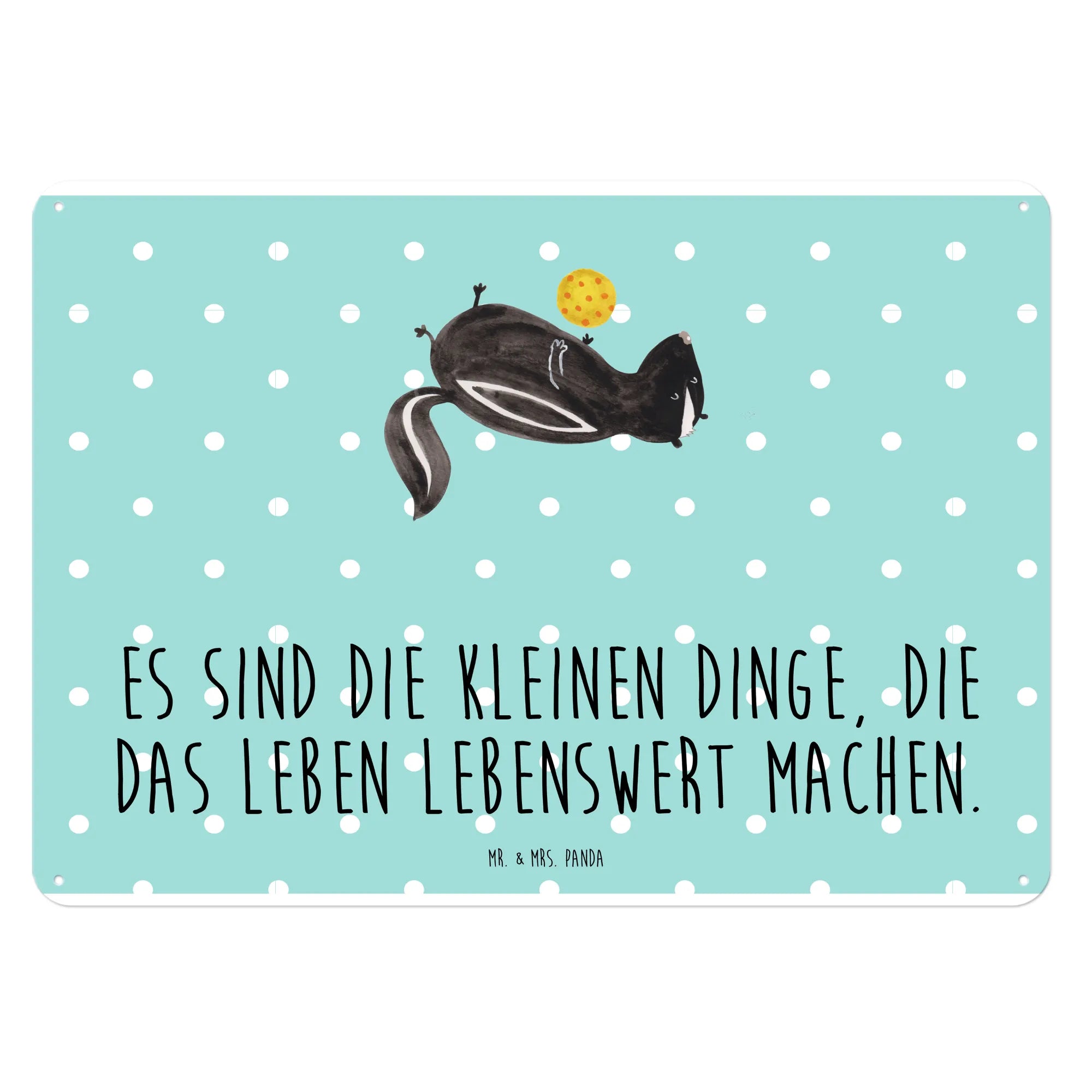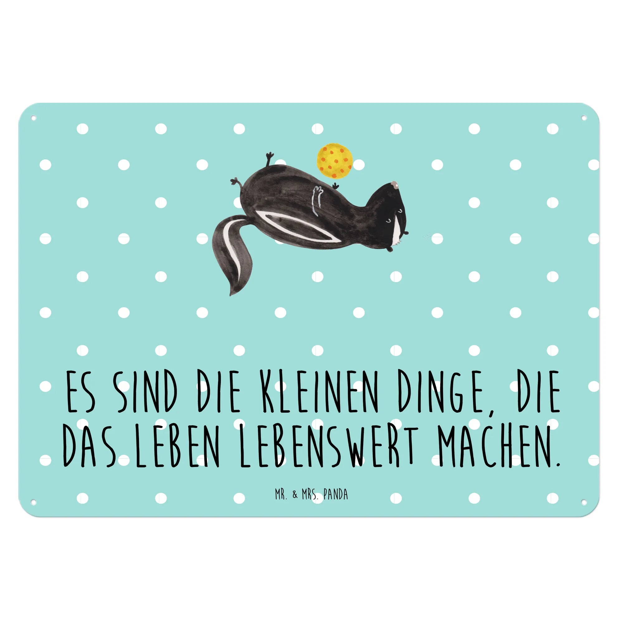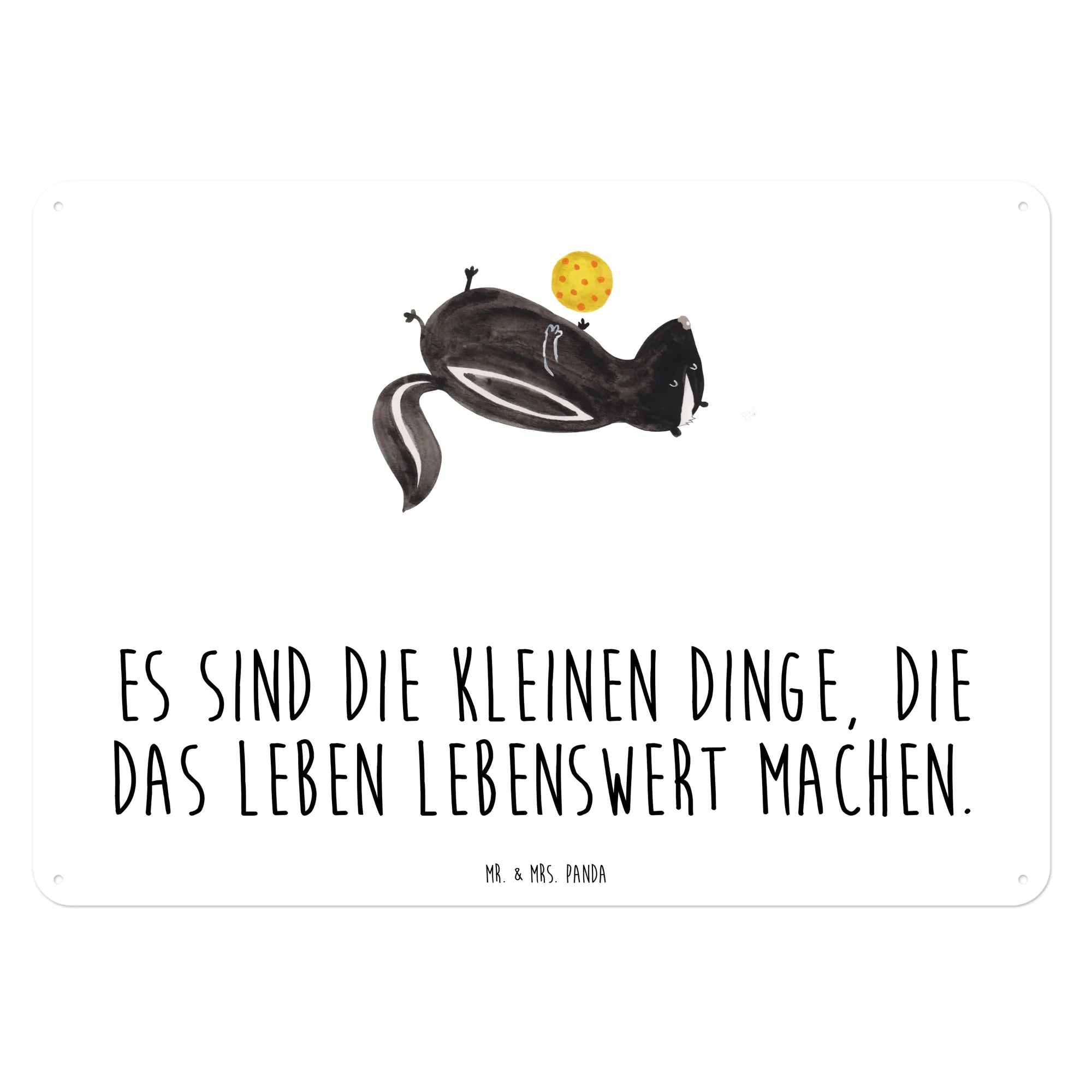 Entdecke unser wunderschönes Blech-Schild mit dem süßen Stinktier-Motiv "Stinktier Ball" von Mr. & Mrs. Panda!