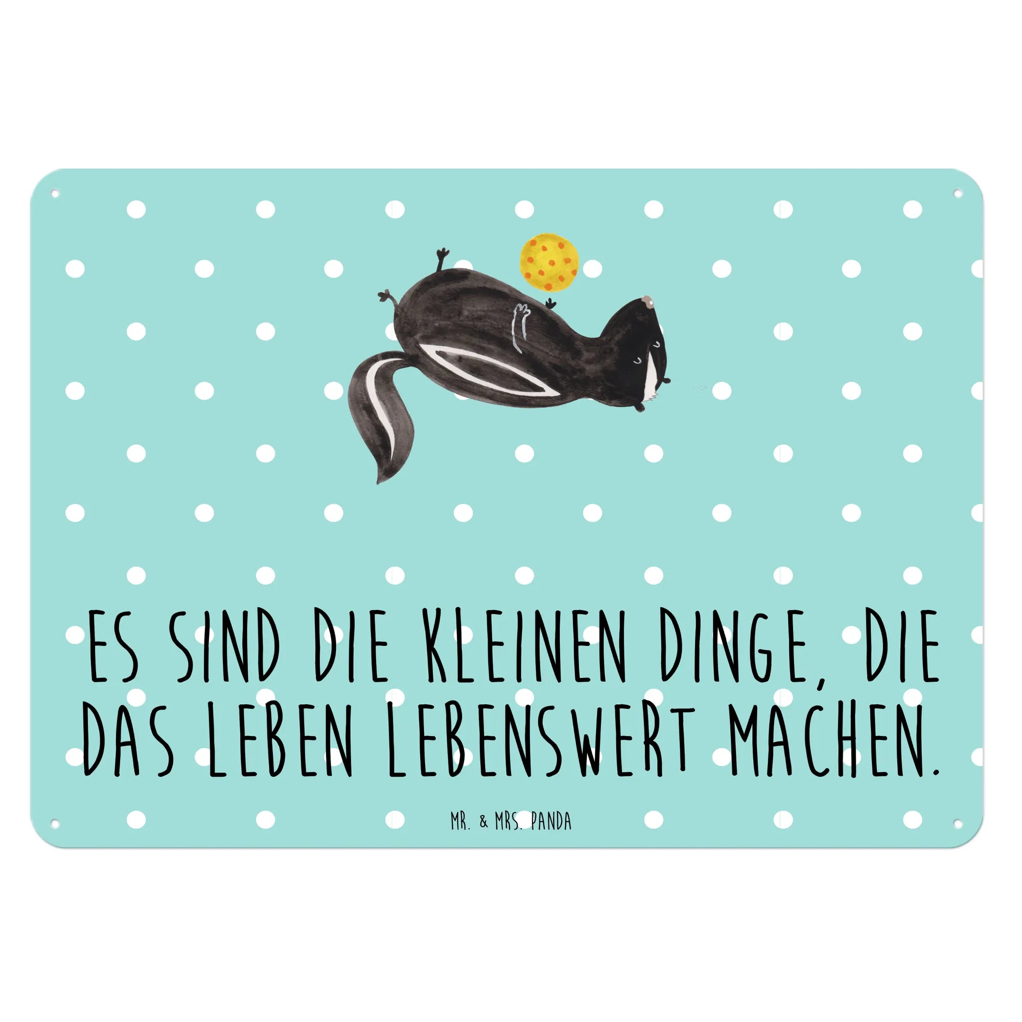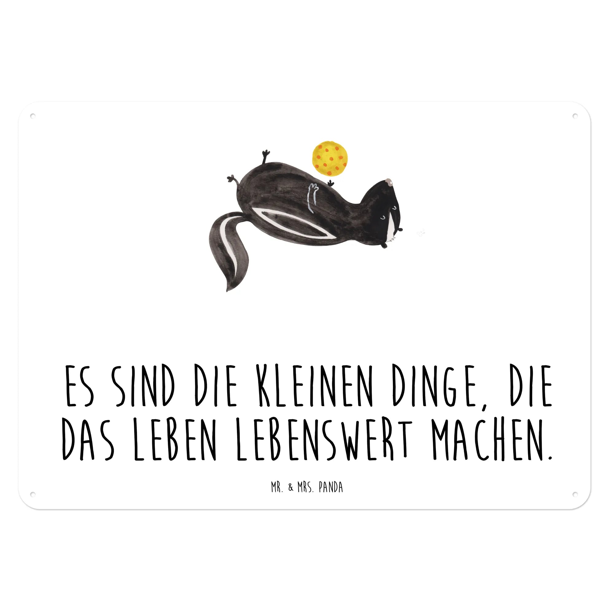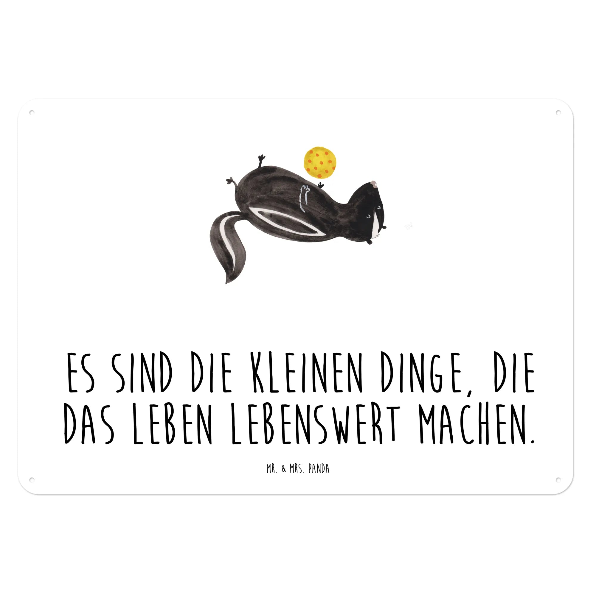 Entdecke unser wunderschönes Blech-Schild mit dem süßen Stinktier-Motiv "Stinktier Ball" von Mr. & Mrs. Panda!