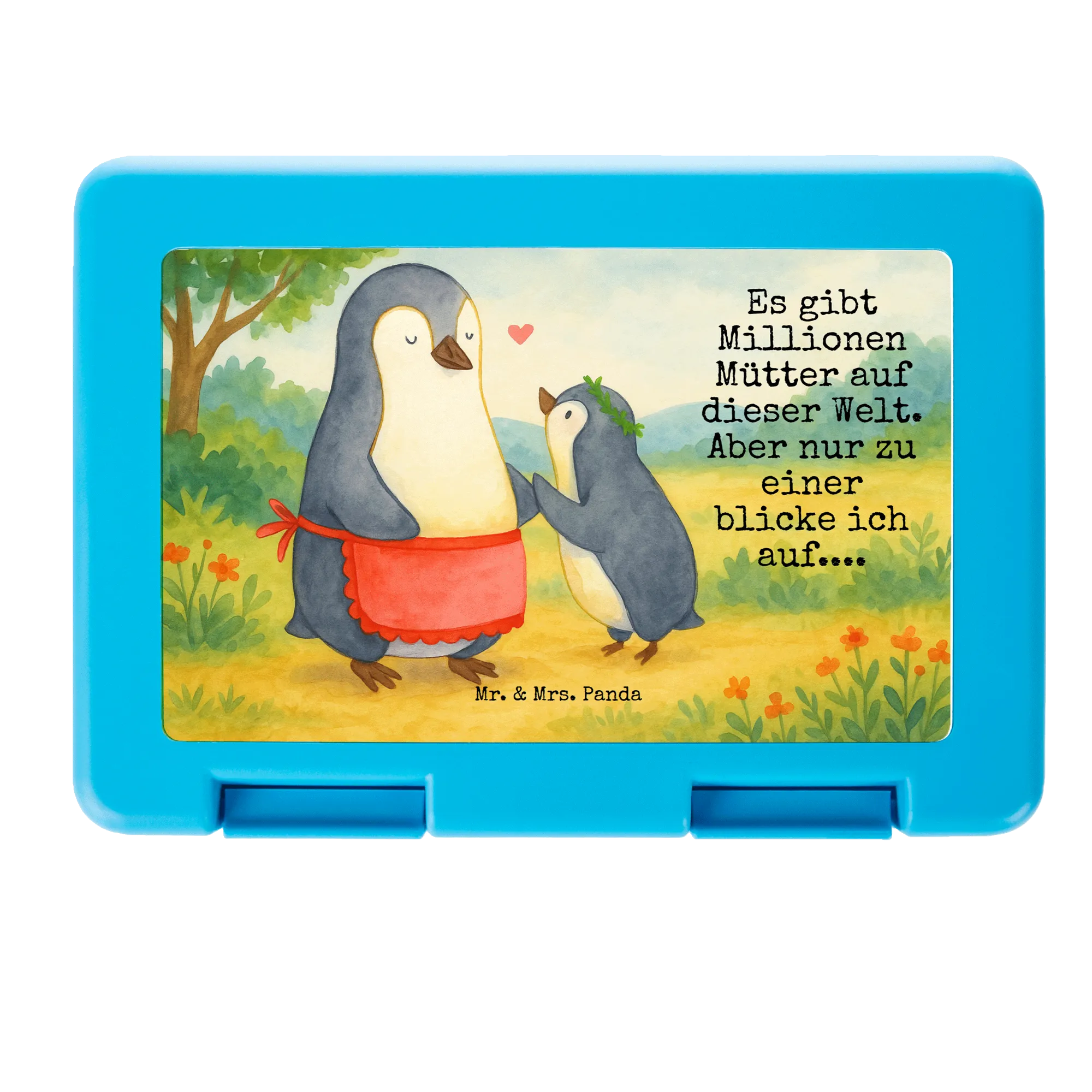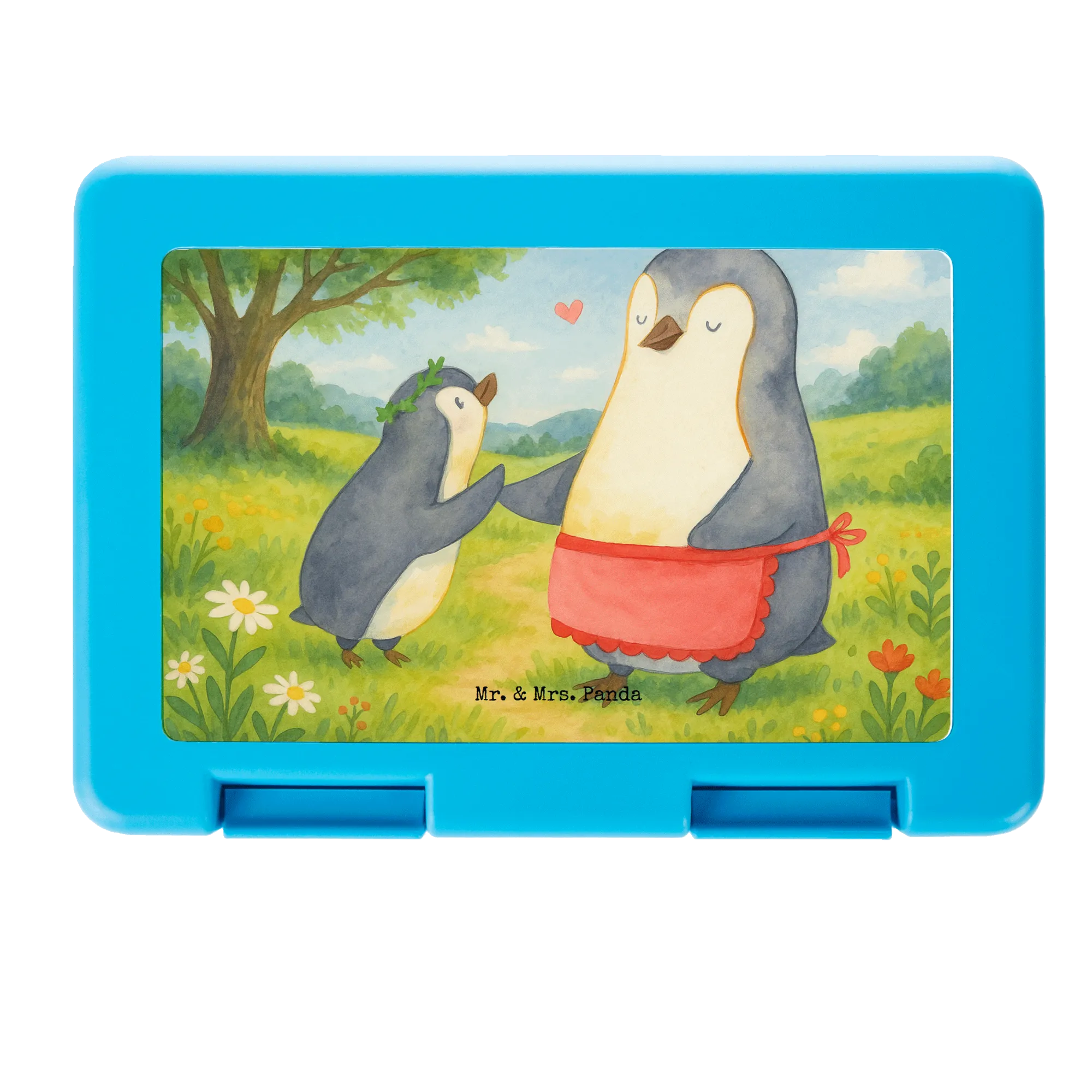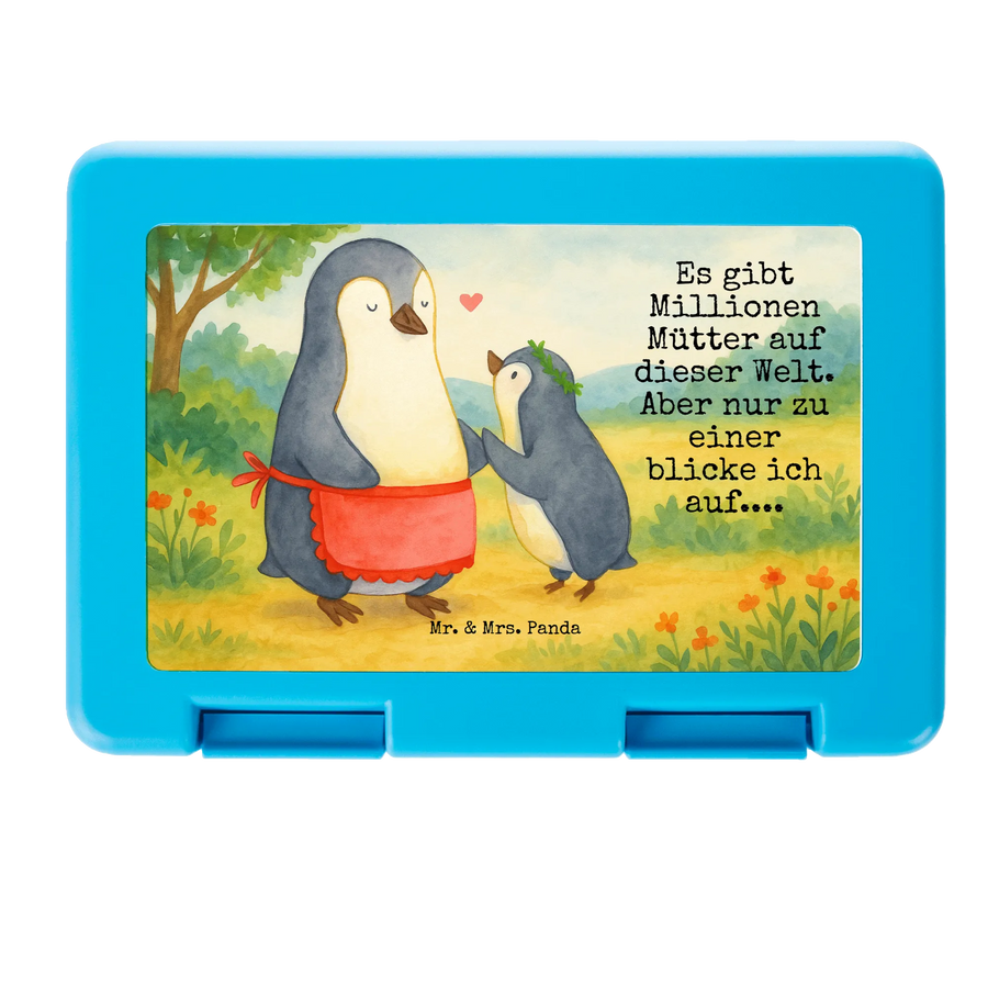 Diese entzückende Brotdose aus unserer Familien-Kollektion vereint Funktionalität mit ganz viel Herz. Das Motiv zeigt eine liebevolle Szene: eine fürsorgliche Mama-Pinguin mit roter Schürze und ihr kleines Küken mit grünem Kranz, verbunden durch ein schwebendes Herz. Ein perfektes Geschenk für Mama zum Muttertag, zum Geburtstag oder einfach als kleine Aufmerksamkeit.