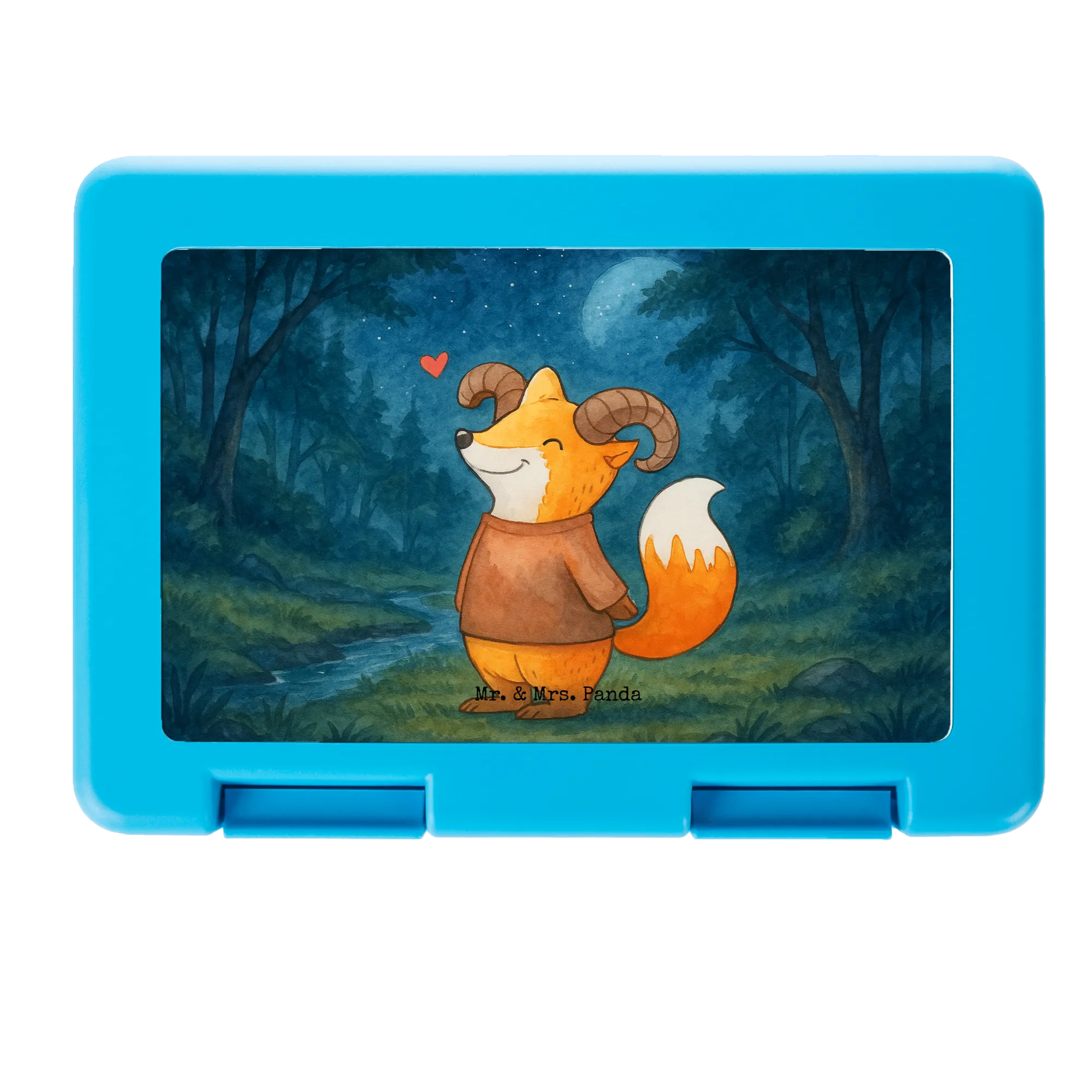 Unsere Brotdose mit dem zauberhaften Widder-Motiv ist ein liebevoll gestaltetes Accessoire für Alltag und Pausen. Das handgezeichnete Motiv zeigt einen warmen, freundlichen Fuchs mit geschwungenen Widderhörnern und einem kleinen roten Herz über dem Kopf. Die fröhlichen Aquarellfarben sorgen für gute Laune – perfekt für Kinder, Jugendliche und alle Sternzeichen-Fans.
