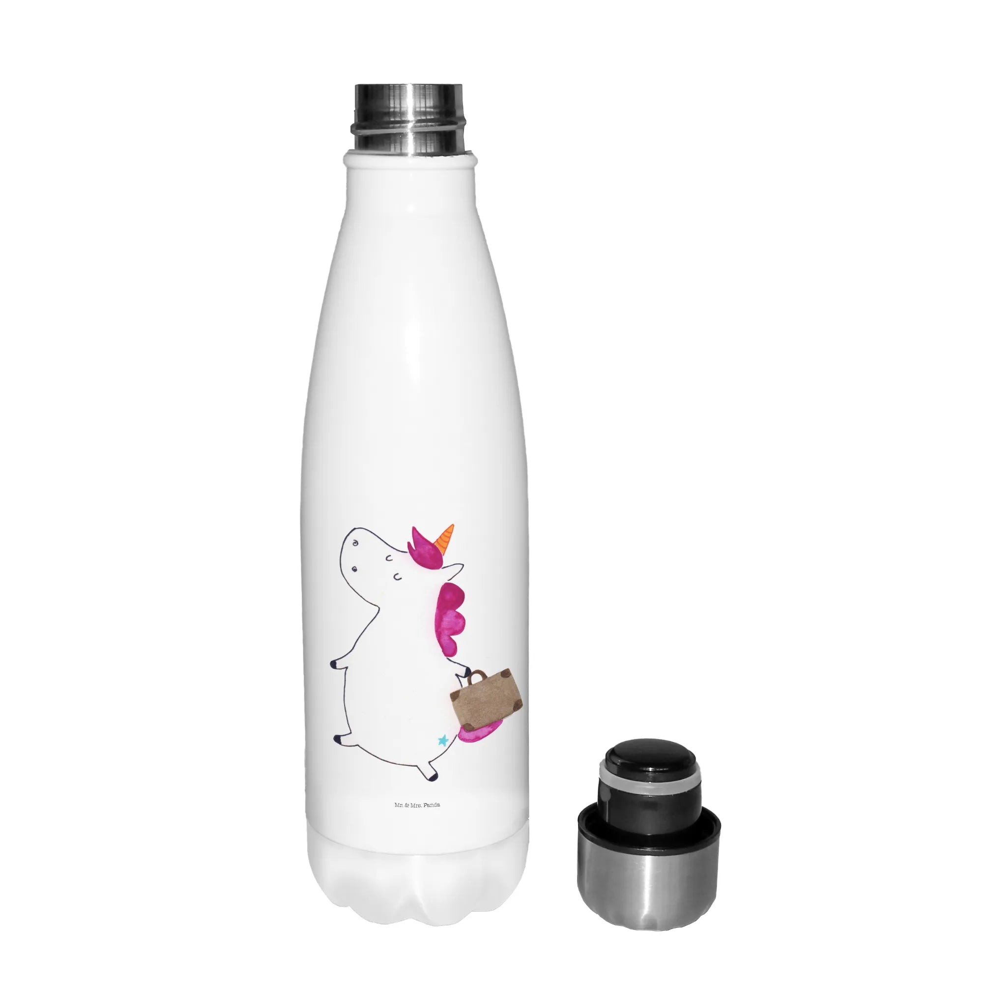 Unsere Thermosflasche „Einhorn Koffer“ aus der Einhorn - Kollektion von Mr. & Mrs. Panda vereint genau diese Eigenschaften. Das liebevoll von Mrs. Panda handgezeichnete Einhorn, das mit einem Koffer loszieht, bringt sofort gute Laune – perfekt für alle, die im Herzen jung geblieben sind. Die weiße Oberfläche lässt das Motiv besonders strahlen.