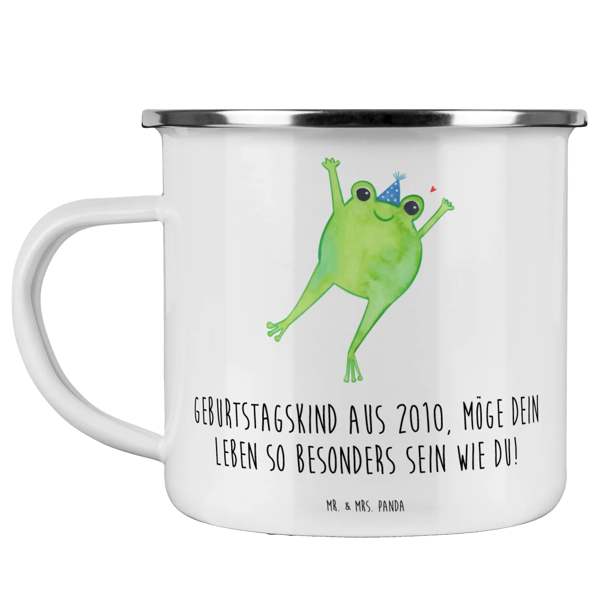 Die Camping Emaille Tasse mit dem Motiv "Geburtstagskind aus 2010, möge dein Leben so besonders sein wie du!" von Mr. & Mrs. Panda ist das perfekte Geschenk für alle, die 2010 geboren wurden. Ob für den eigenen Geburtstag oder als wunderbares Überraschungsgeschenk, diese Tasse wird garantiert zum Highlight jeder Feier. Mit einer Füllmenge von 300 ml ist sie ideal für heiße und kalte Getränke, sei es beim Camping, beim Wandern oder beim gemütlichen Beisammensein am Lagerfeuer. Ihr leichtes Gewicht und die praktische Handhabung machen sie zu einem unverzichtbaren Begleiter in der Outdoor-Welt.