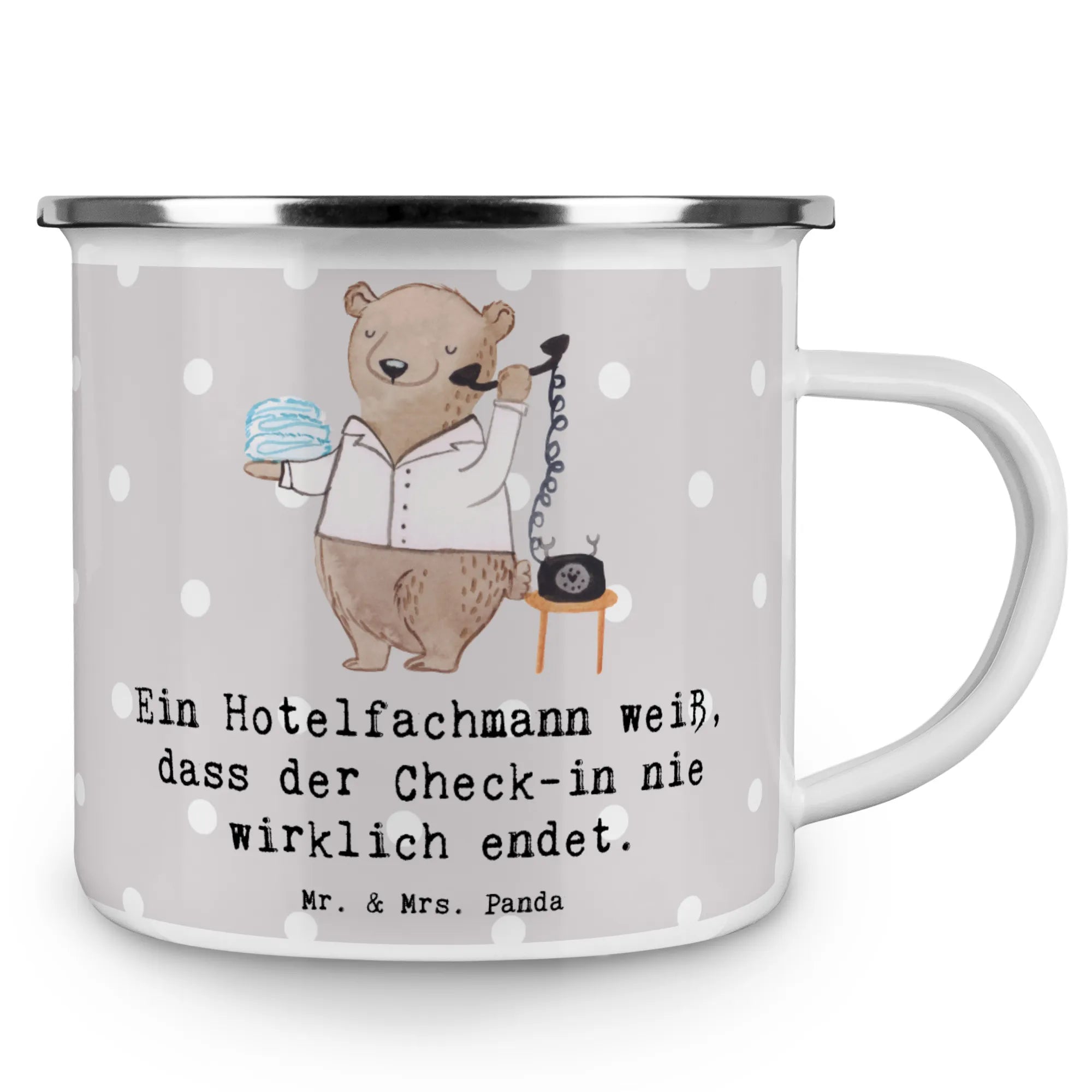 Camping Emaille Tasse Ein Hotelfachmann weiß, dass der Check-in nie wi – Mr. & Mrs. Panda