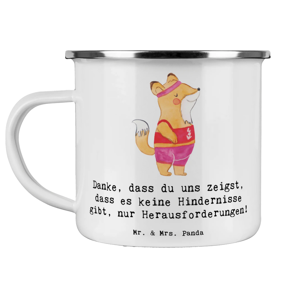 Die Camping Emaille Tasse "Leichtathletik Trainerin" von Mr. & Mrs. Panda ist das perfekte Geschenk für jede sportbegeisterte Trainerin. Sie kombiniert praktisches Design mit einem liebevollen Spruch, der sagt: "Danke, dass du uns zeigst, dass es keine Hindernisse gibt, nur Herausforderungen!" Diese Tasse ist nicht nur ein schöner Hingucker, sondern auch äußerst funktional. Mit einer Füllmenge von 300 ml ist sie ideal für Kaffee, Tee oder andere köstliche Getränke – sei es beim Campen, beim Wandern oder einfach im Alltag.