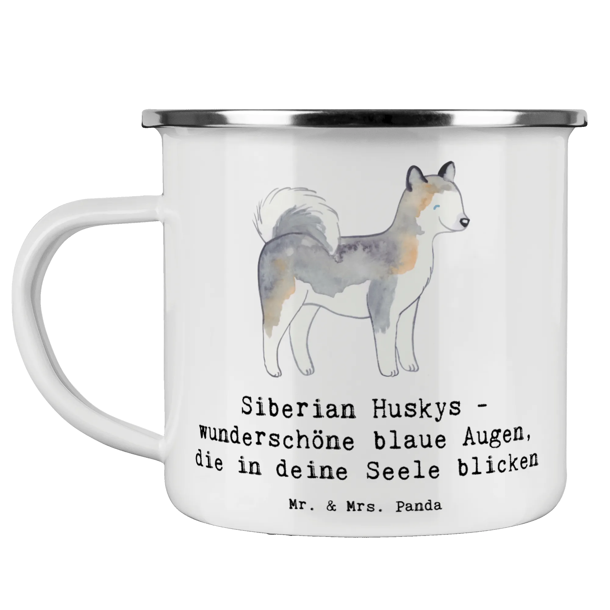 Camping Emaille Tasse Siberian Husky Augenzauber - Weiß