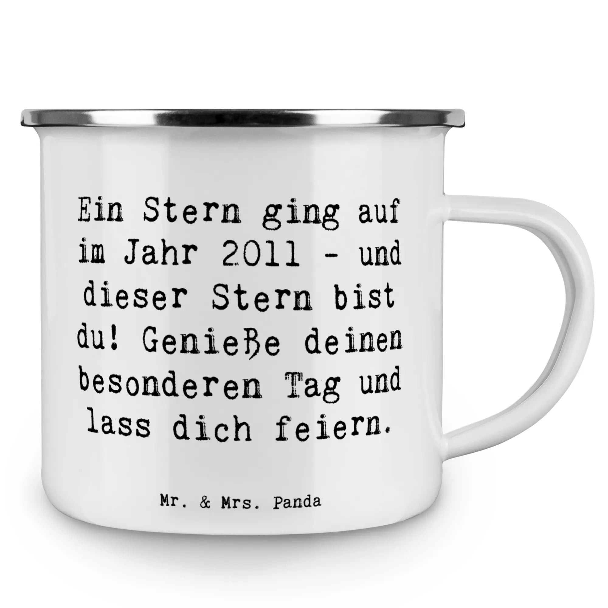 Die wunderschöne Camping Emaille Tasse von Mr. & Mrs. Panda ist das perfekte Geschenk für alle, die ihren besonderen Tag gebührend feiern möchten! Mit dem liebevollen Motiv "Ein Stern ging auf im Jahr 2011 - und dieser Stern bist du! Genieße deinen besonderen Tag und lass dich feiern." wird jedes Getränk zu einem besonderen Moment.