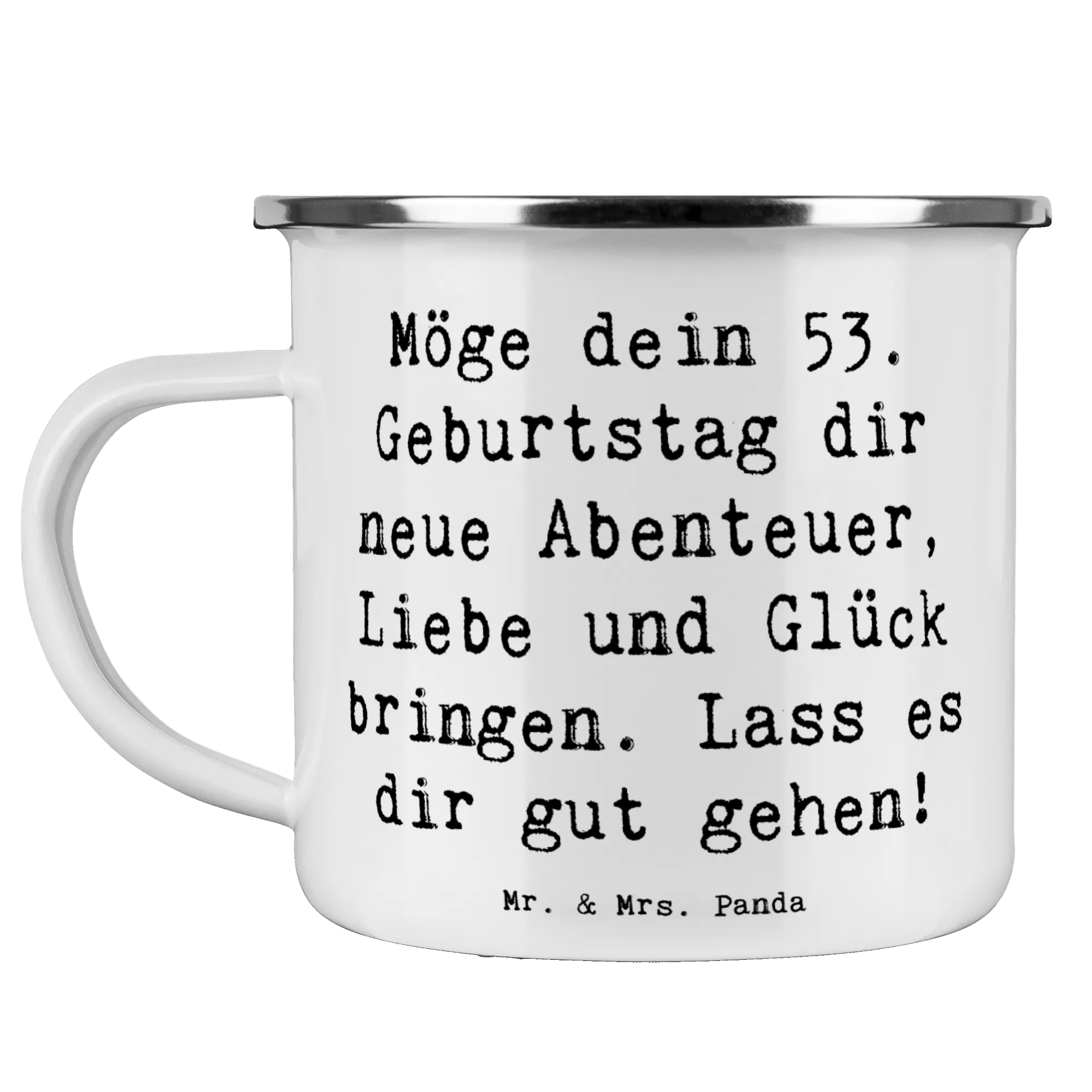 Die Camping Emaille Tasse mit dem liebevollen Spruch "Möge dein 53. Geburtstag dir neue Abenteuer, Liebe und Glück bringen. Lass es dir gut gehen!" ist das perfekte Geschenk für alle, die ihren besonderen Tag stilvoll feiern möchten.