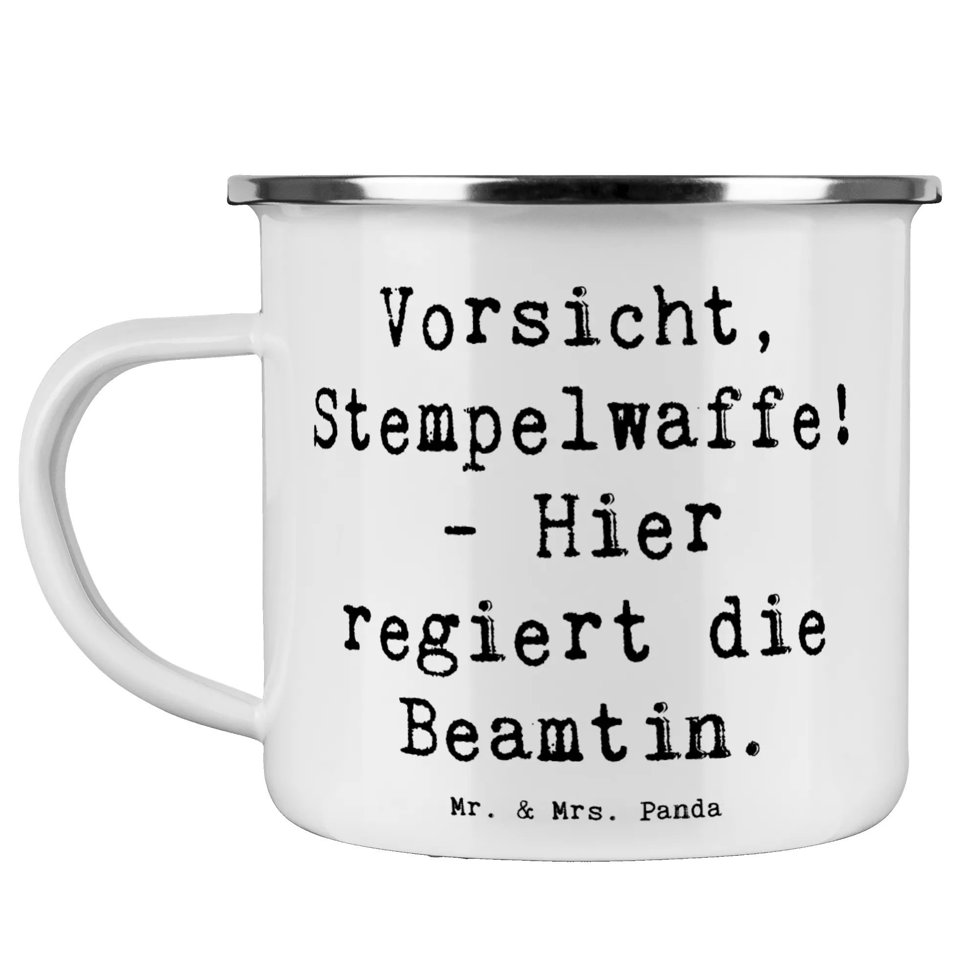 Camping Emaille Tasse Spruch Beamtin Stempelwaffe