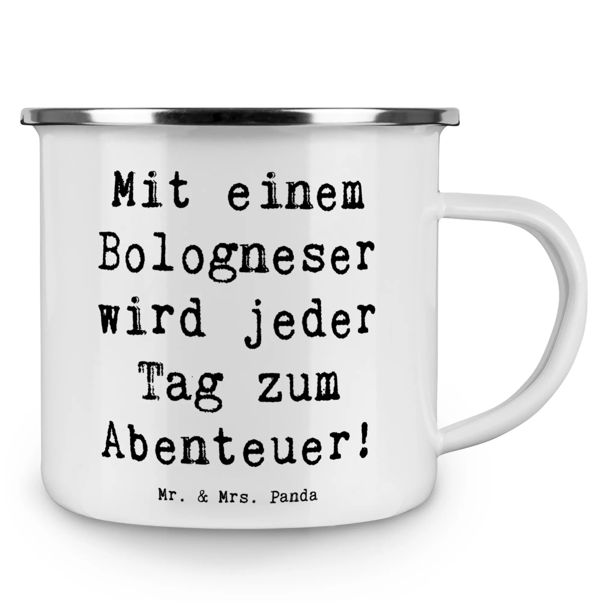 Camping Emaille Tasse Spruch Bologneser Abenteuer