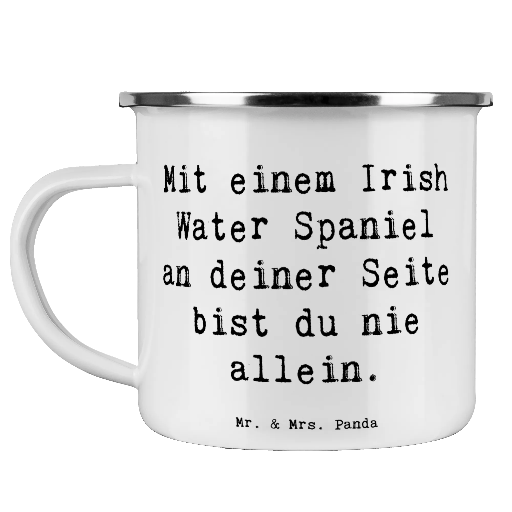 Camping Emaille Tasse Spruch Irish Water Spaniel Begleiter – Mr. & Mrs. Panda