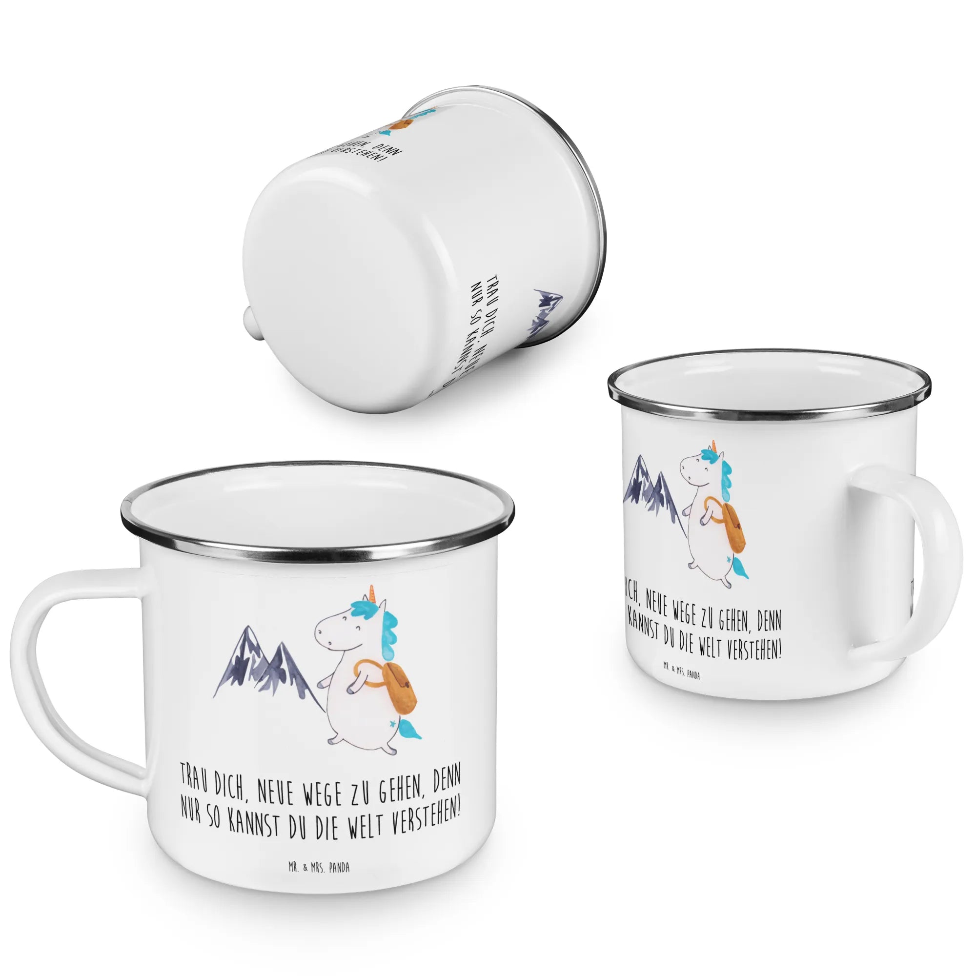Die Camping Emaille Tasse "Unbekannte Orte erkunden" aus der Mutmacher Kollektion von Mr. & Mrs. Panda ist nicht nur ein vielseitiger Trinkbecher, sondern auch eine Quelle der Inspiration. Ideal für alle, die gerne in die Natur hinausgehen, neue Abenteuer erleben und Mut für neue Wege schöpfen möchten.