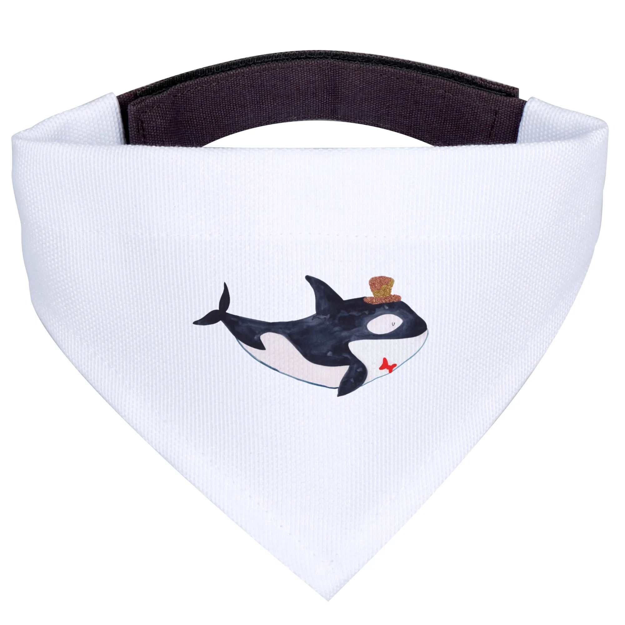 Chusta na szyję dla psa L Orka cylinder - Bandana dla psów M - z napisem - biały