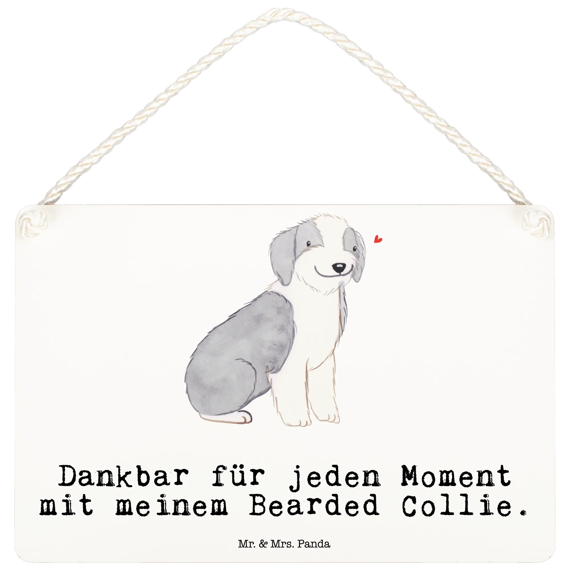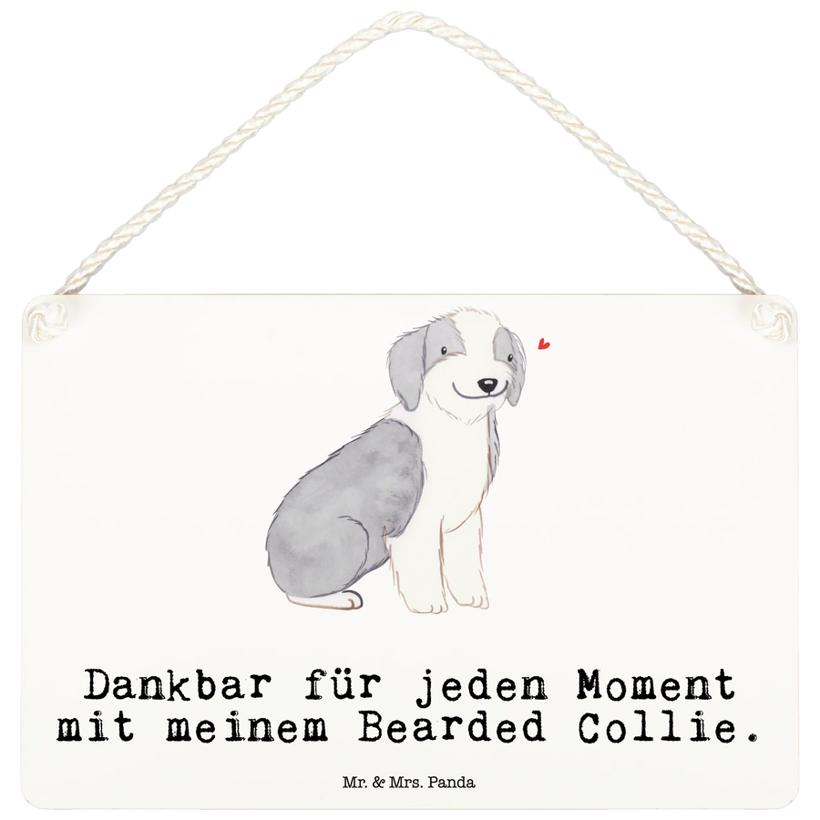 Der Bearded Collie ist bekannt für seine herzerwärmende und freundliche Art, die auf unserem Schild wunderschön zur Geltung kommt. Mit dem Slogan 'Dankbar für jeden Moment mit meinem Bearded Collie' fängt es das positive Gefühl der Verbundenheit zwischen Mensch und Hund ein.