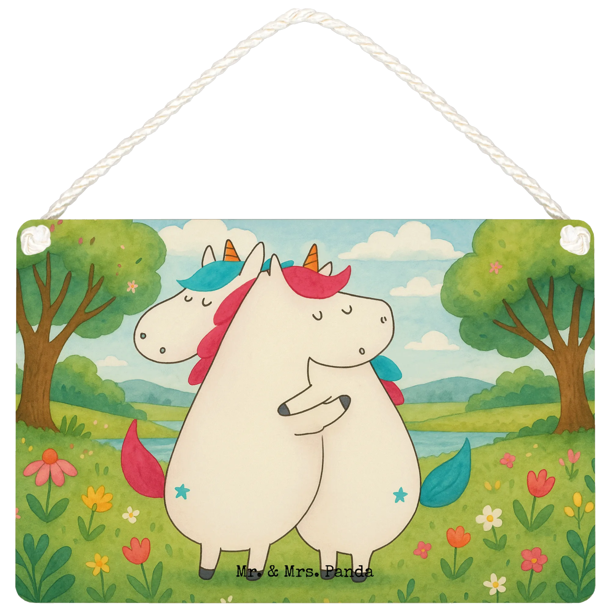 Deko Schild Einhörner Umarmen Design - DIN A6 - mit Spruch