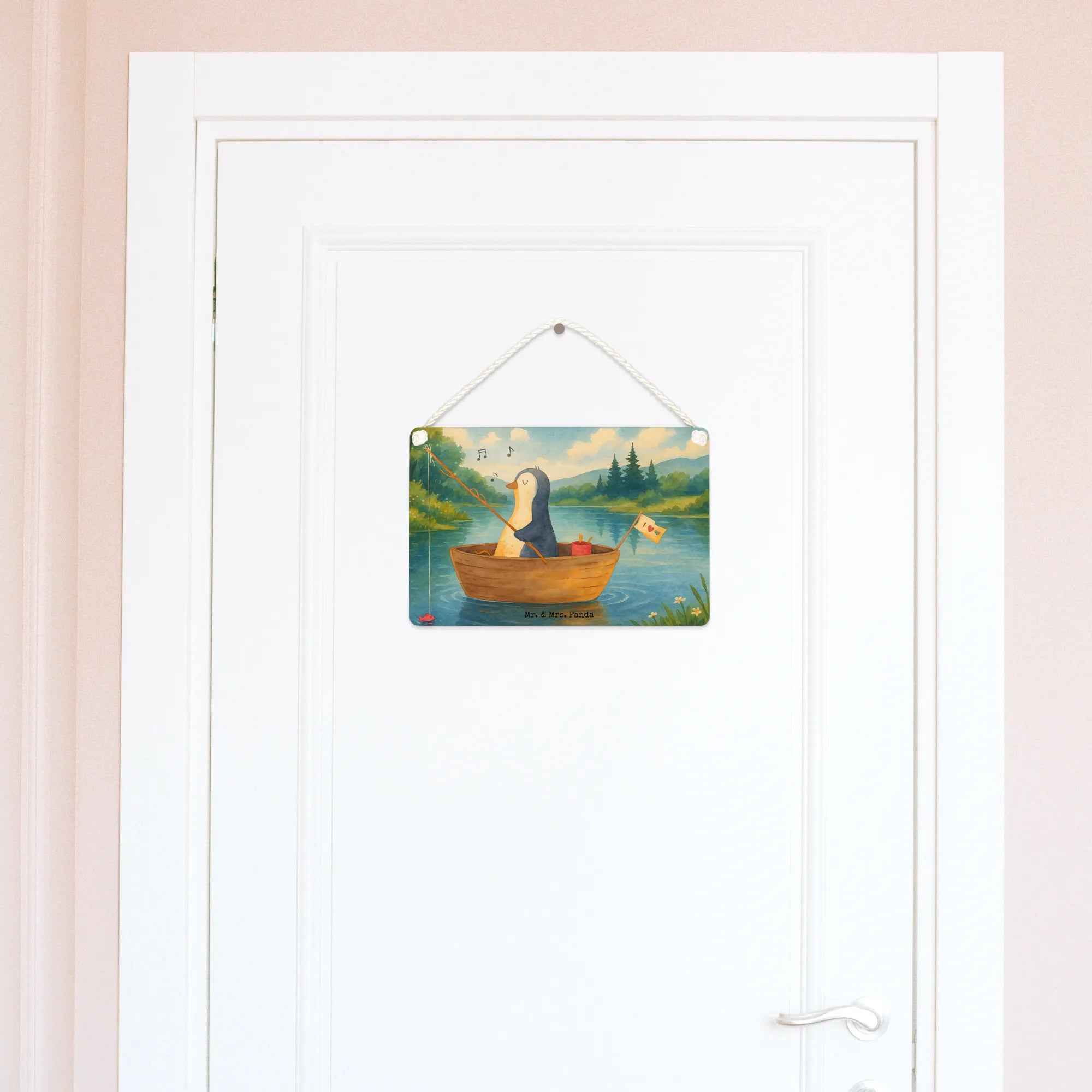 Deko Schild Pinguin Angelboot Design - DIN A5 - mit Spruch