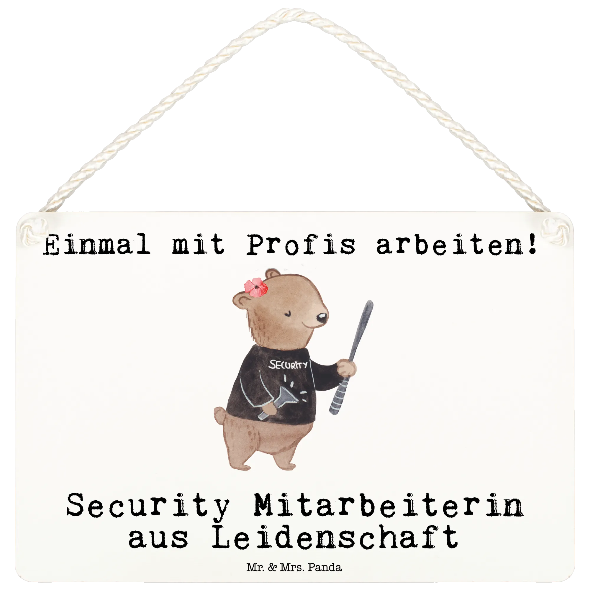 Entdecke unser wunderschönes Deko Schild "Security Mitarbeiterin aus Leidenschaft" aus der kreativen Berufe Kollektion von Mr. & Mrs. Panda. Dieses liebevoll gestaltete Schild beeindruckt nicht nur durch sein sprangfreudiges Design, sondern macht sich auch perfekt als Dekoration für die Wand oder die Tür.