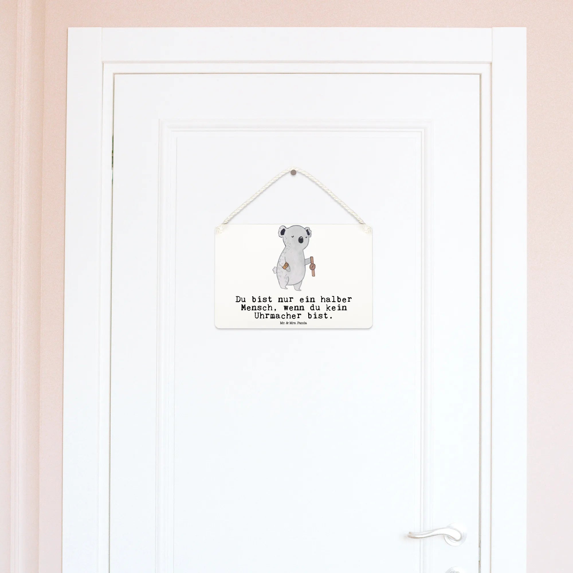 Mit dem süßen Koala, der stolz eine goldene Uhr am Handgelenk hält, und dem Hinweis "Du bist nur ein halber Mensch, wenn du kein Uhrmacher bist", ist es ein wahrhaftiges Highlight für jede Wand oder Tür.