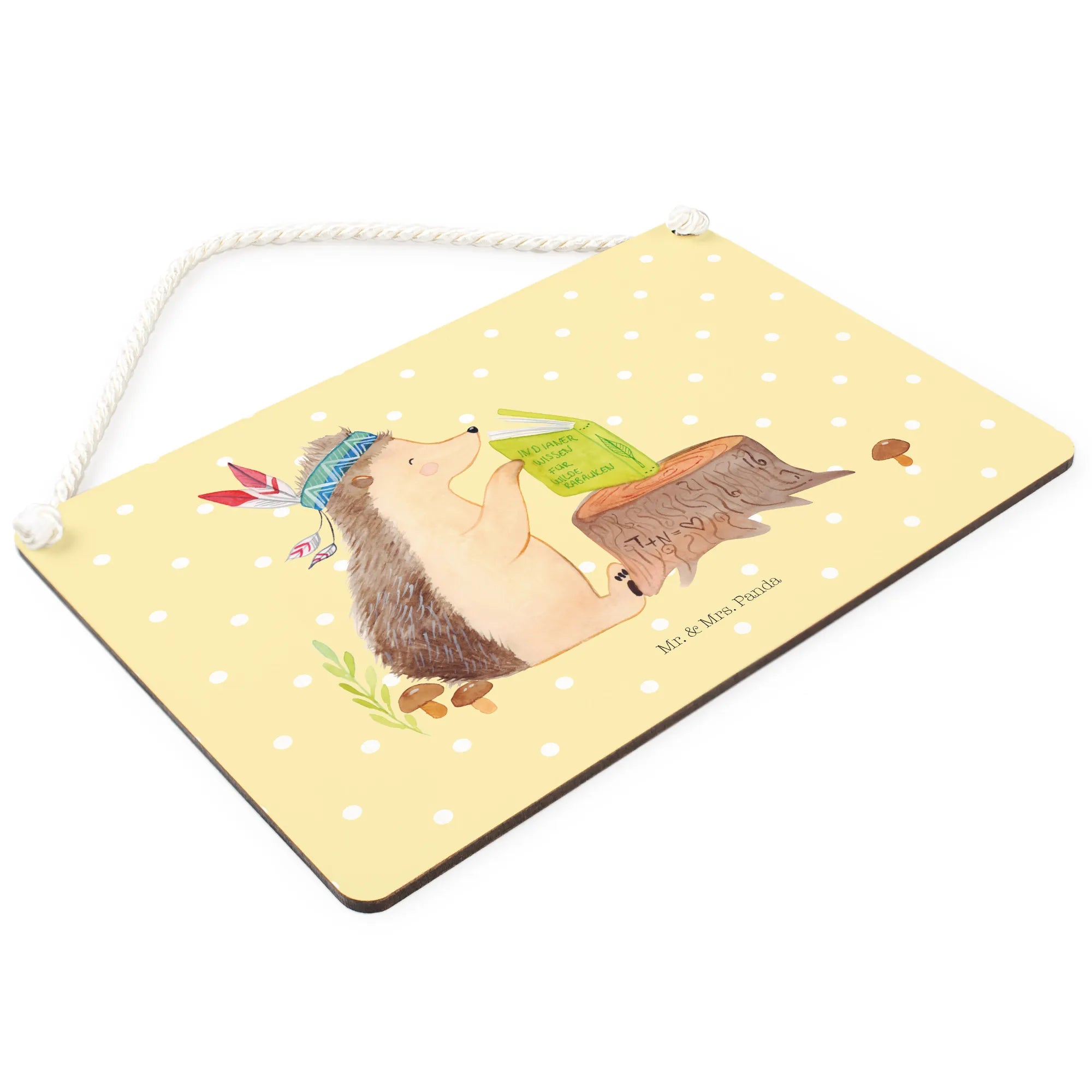 Dekoracyjny znak jeż Ozdoba z piór - z napisem - biały
