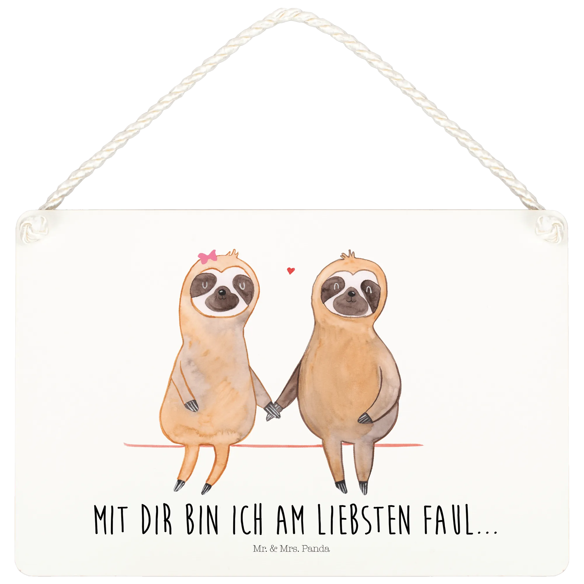Dekoracyjny znak leniwiec para - DIN A5 - z napisem - biały