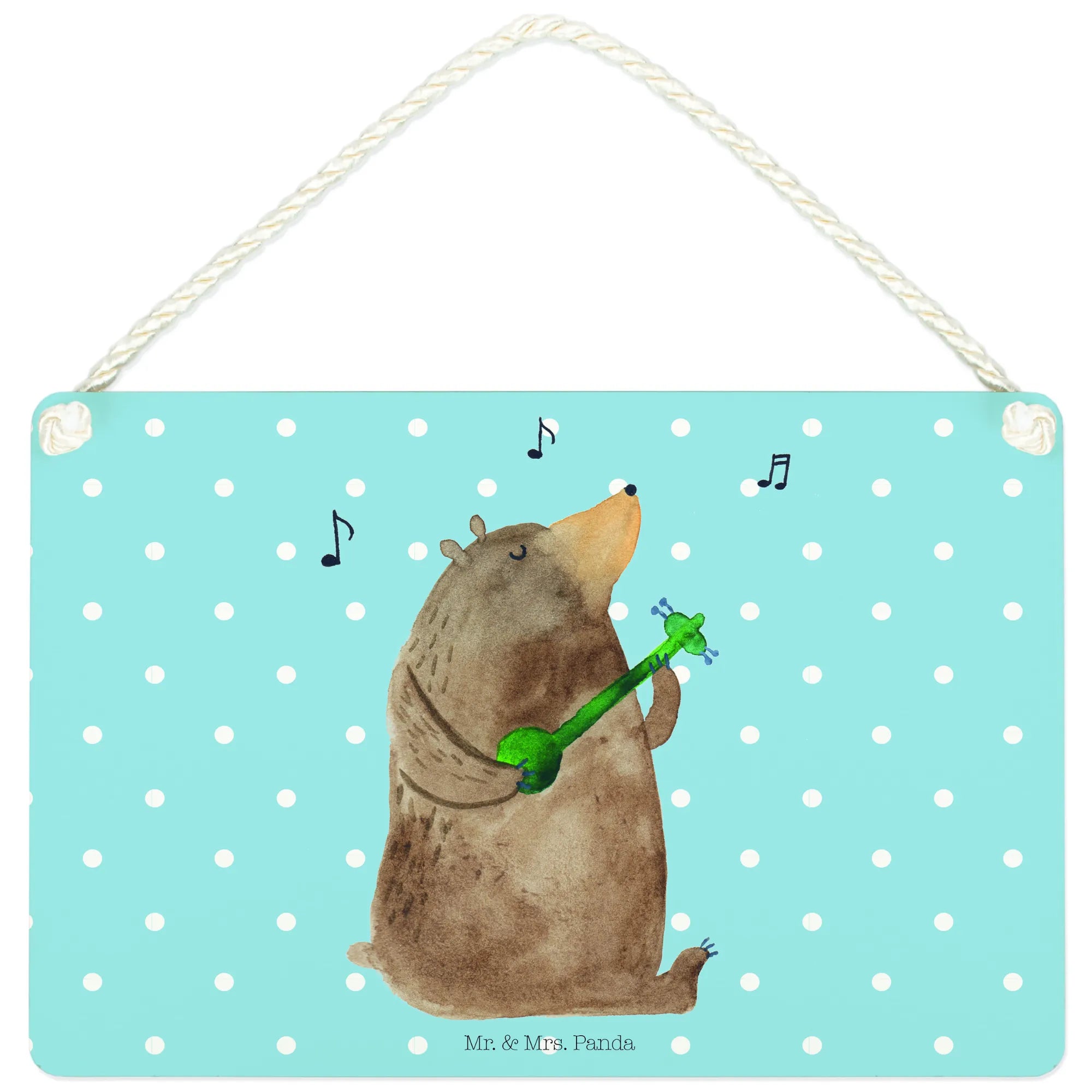 Dekoracyjny znak niedźwiedź Gitara - z napisem - Blau Pastell
