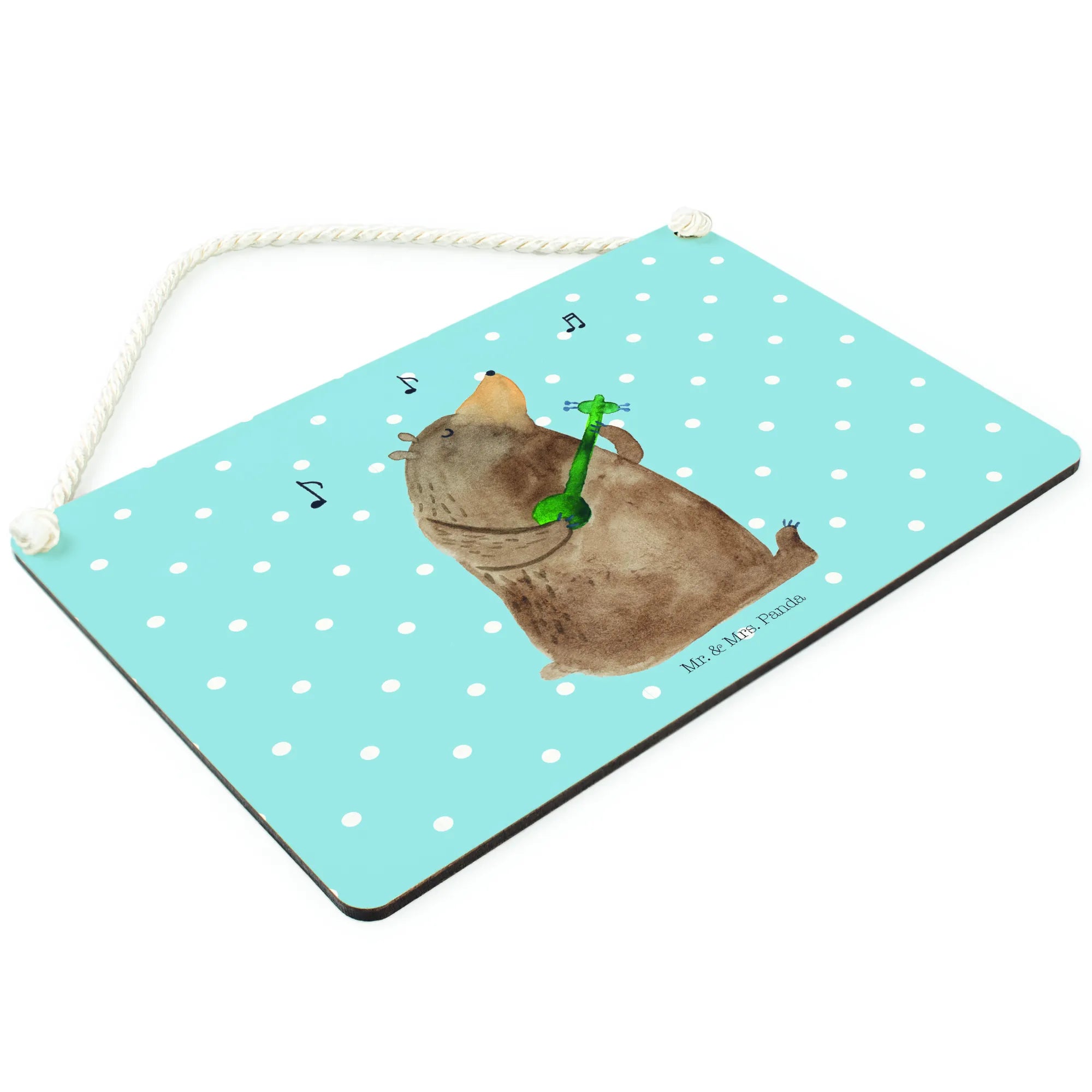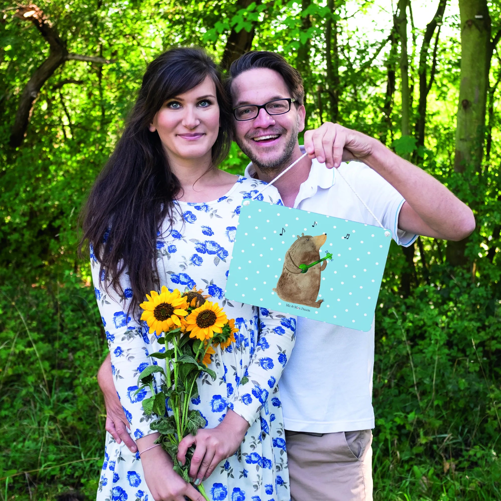 Dieses charmante Wandschild vereint süße Illustration und praktische Funktion. Der kleine Bär, der auf seiner Gitarre spielt, ist perfekt für alle, die Musik und behagliche Deko lieben. Die handgezeichnete Aquarell-Optik von Mrs. Panda verleiht dem Motiv Wärme und Persönlichkeit, sodass es in Wohnzimmer, Flur, Musikzimmer oder am Proberaum eine wunderschöne Stimmung zaubert. 🎸🐻