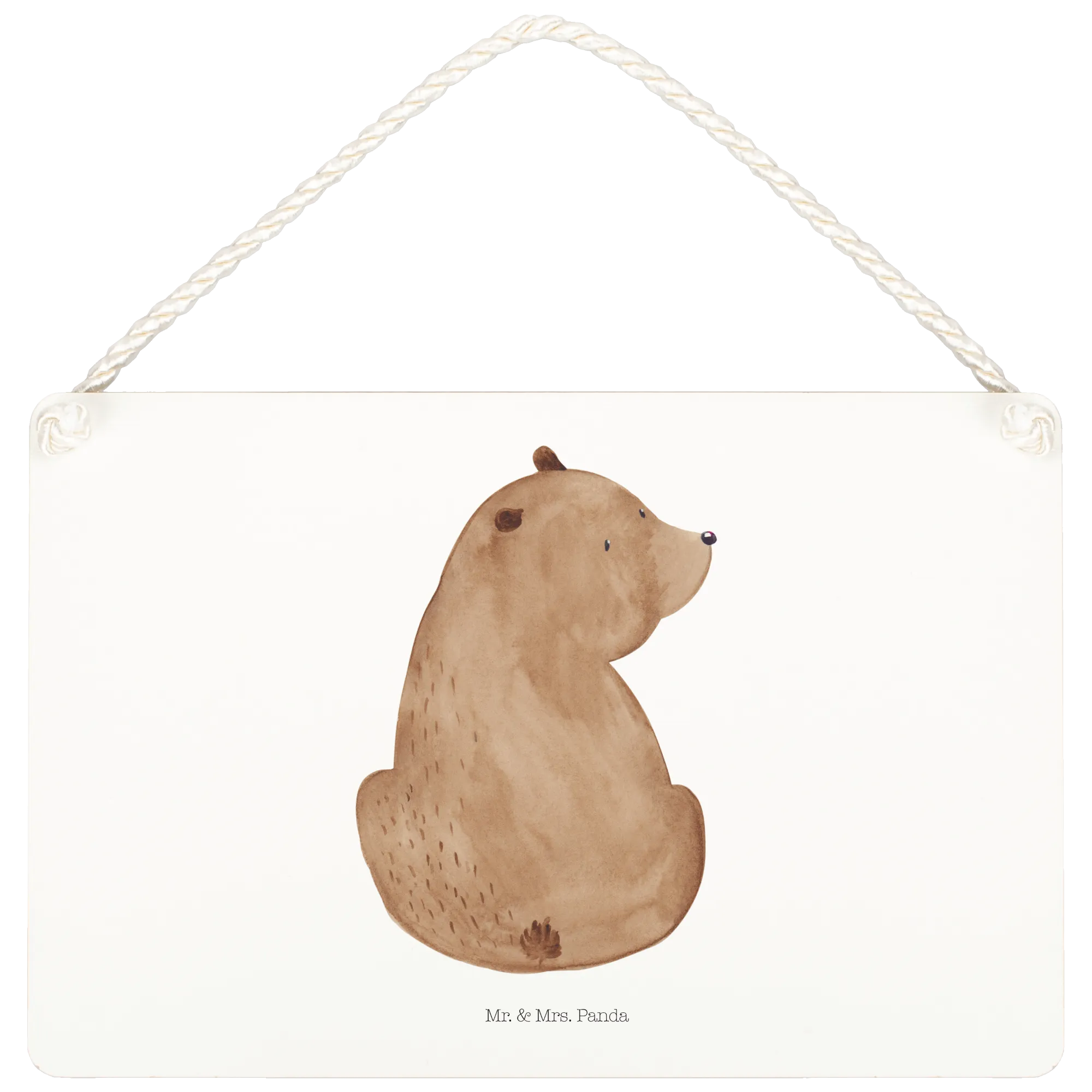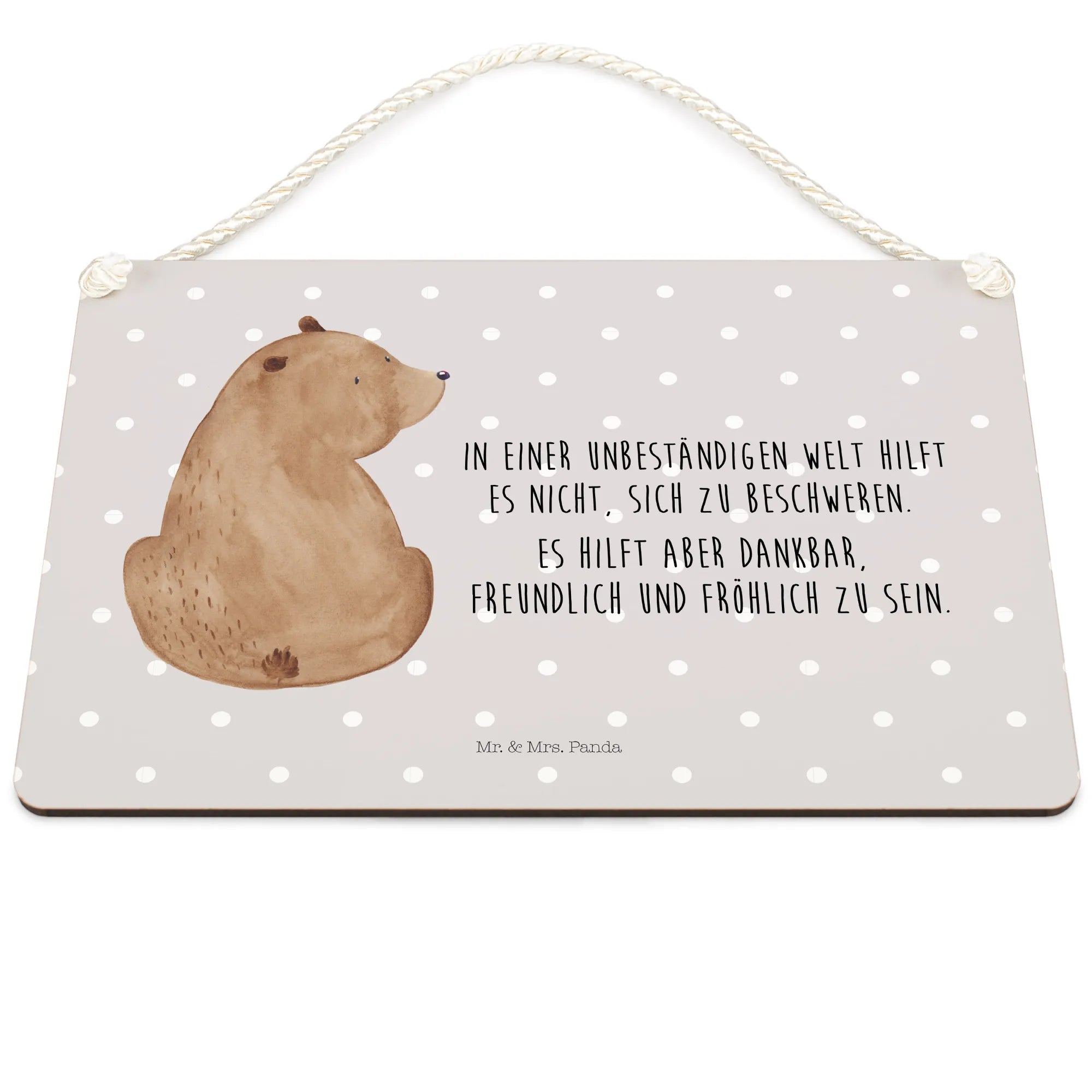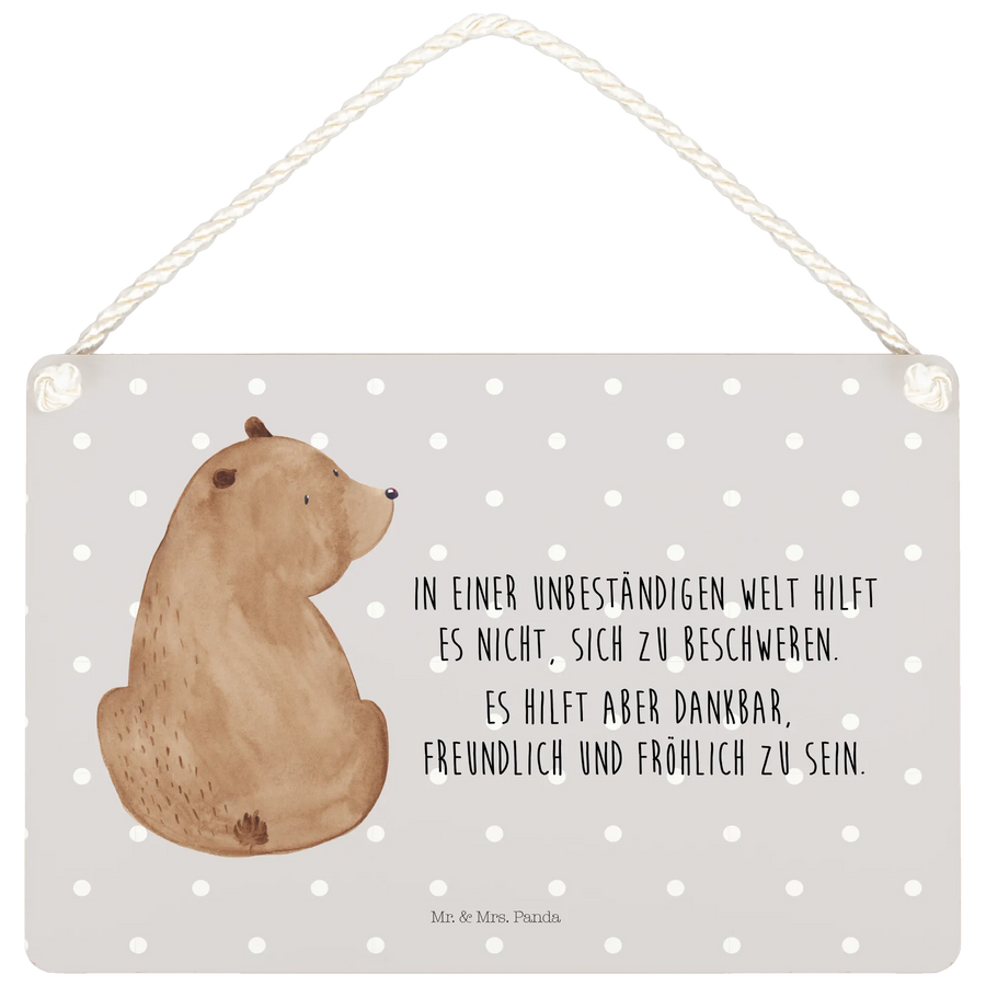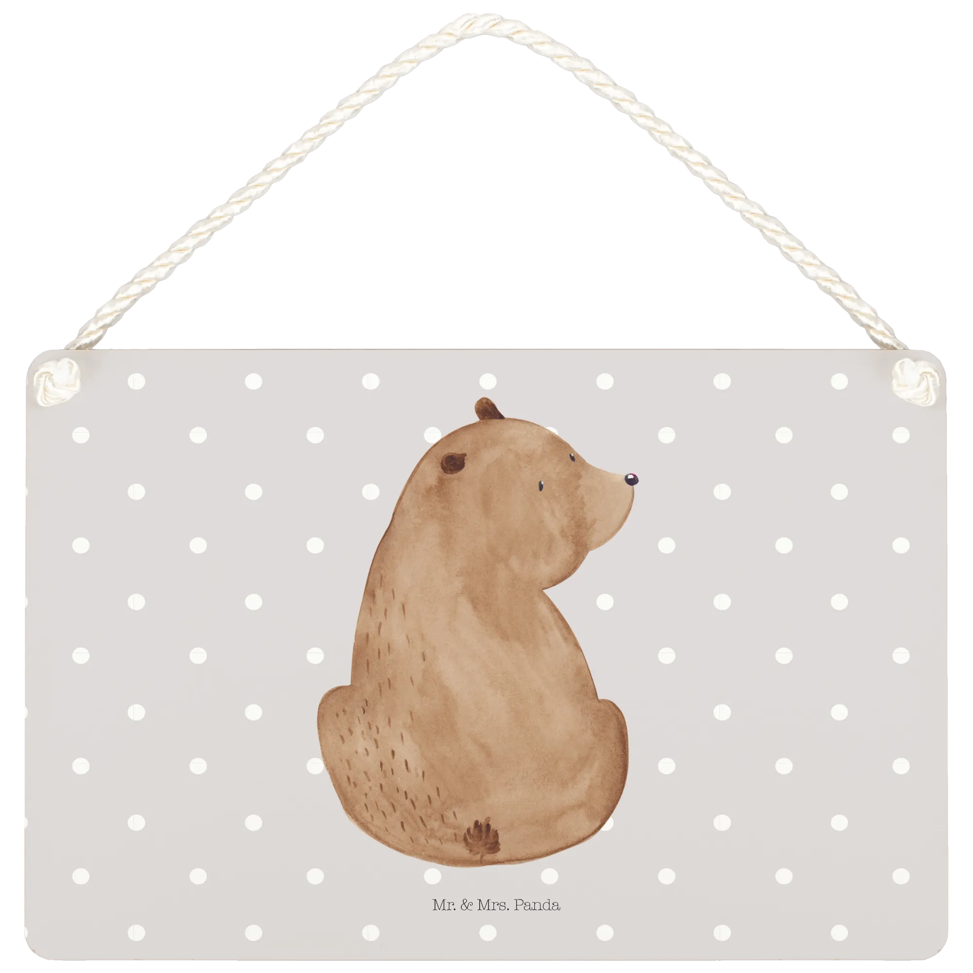 Dekoracyjny znak niedźwiedź spojrzenie przez ramię - DIN A5 - z napisem - Pastelowy szary