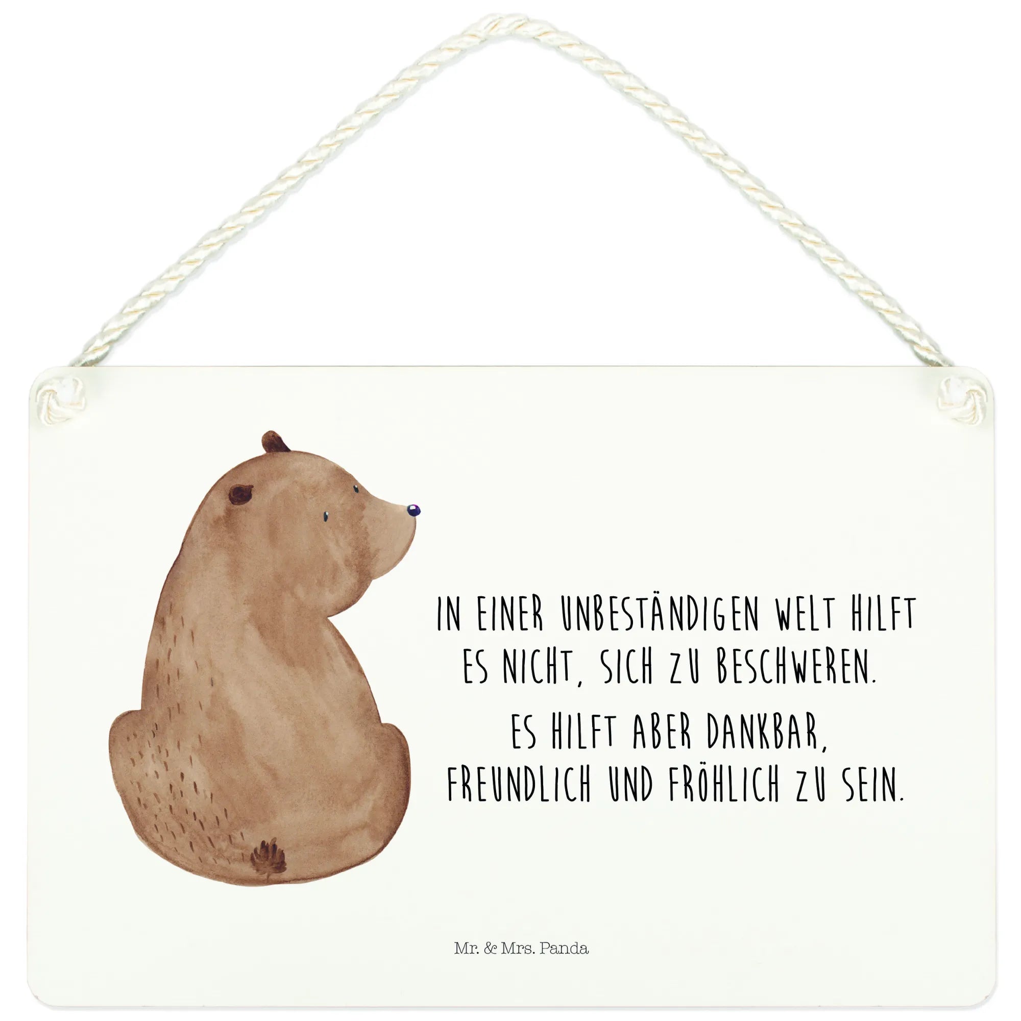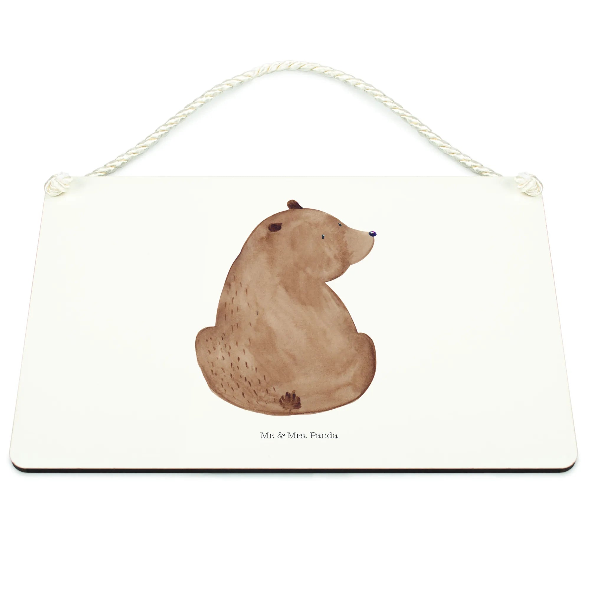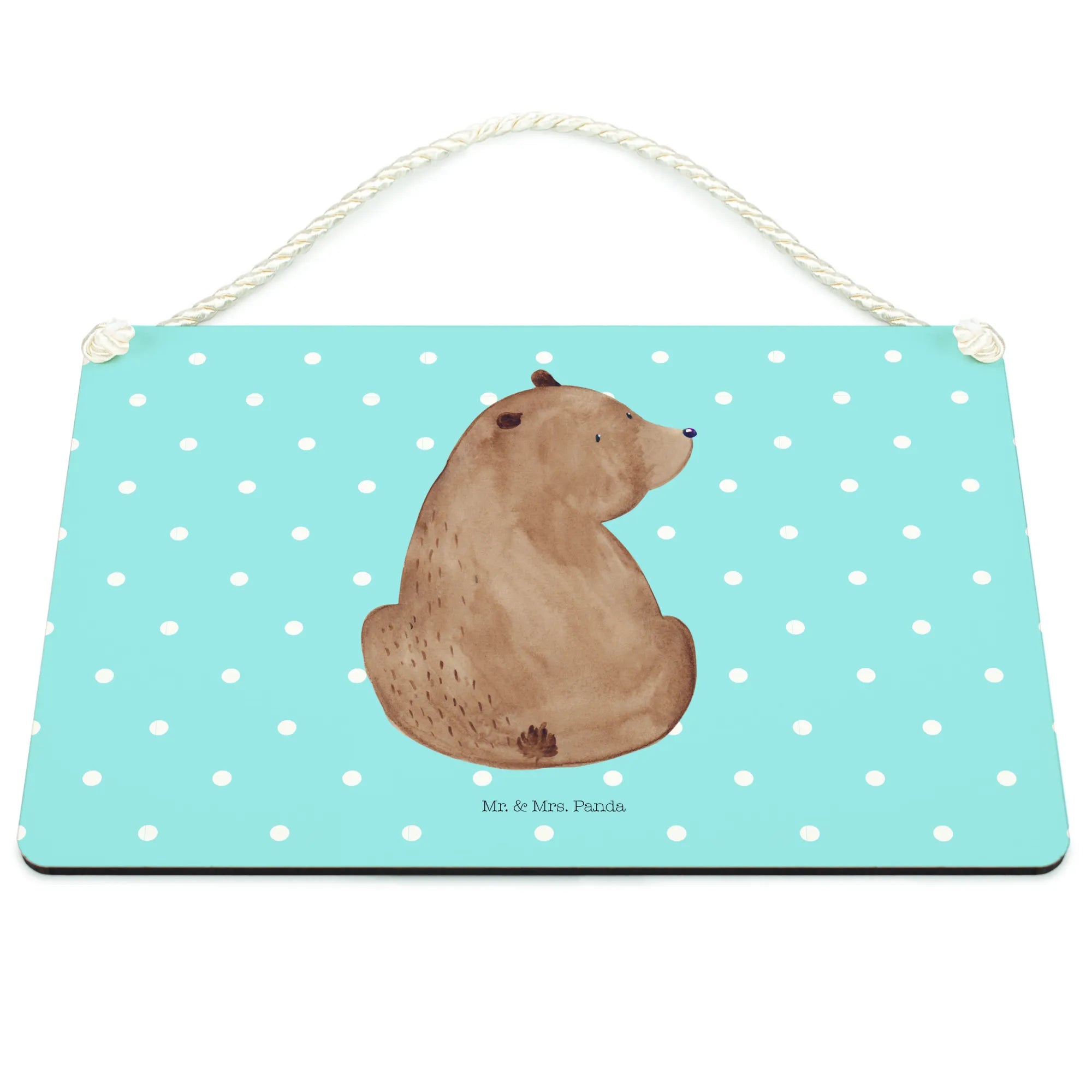 Dekoracyjny znak niedźwiedź spojrzenie przez ramię - DIN A5 - z napisem - Pastelowy szary
