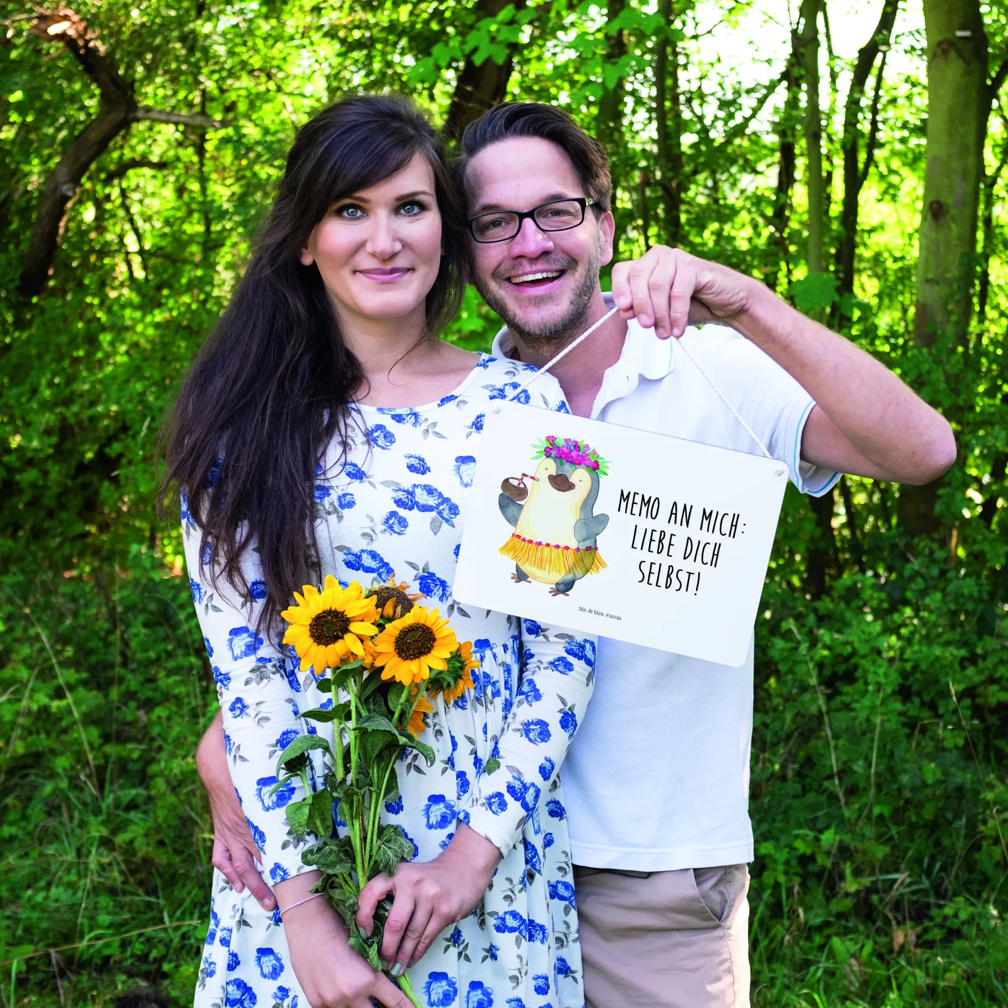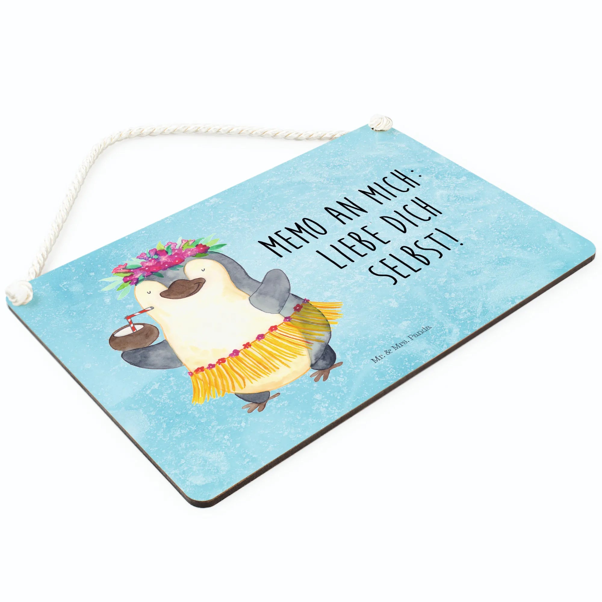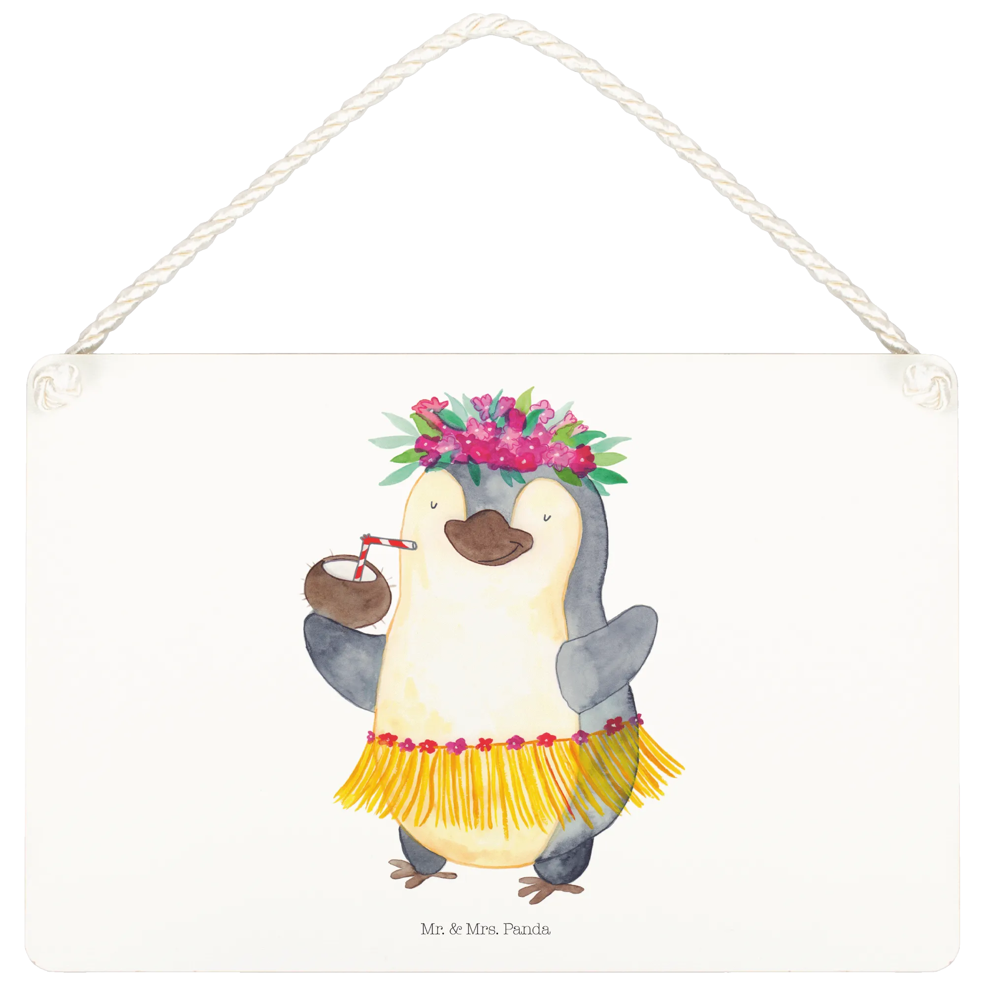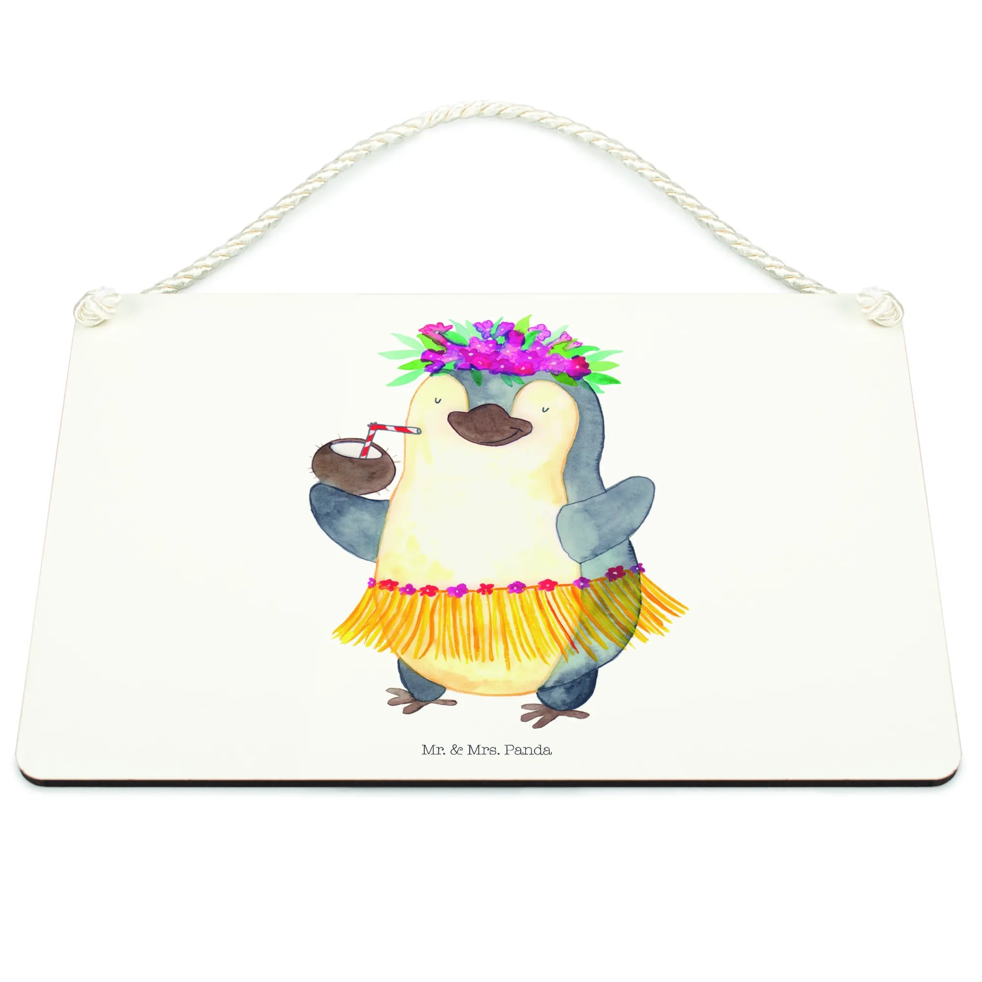 Dekoracyjny znak Pingwin z Kokosem - DIN A5 - z napisem - biały