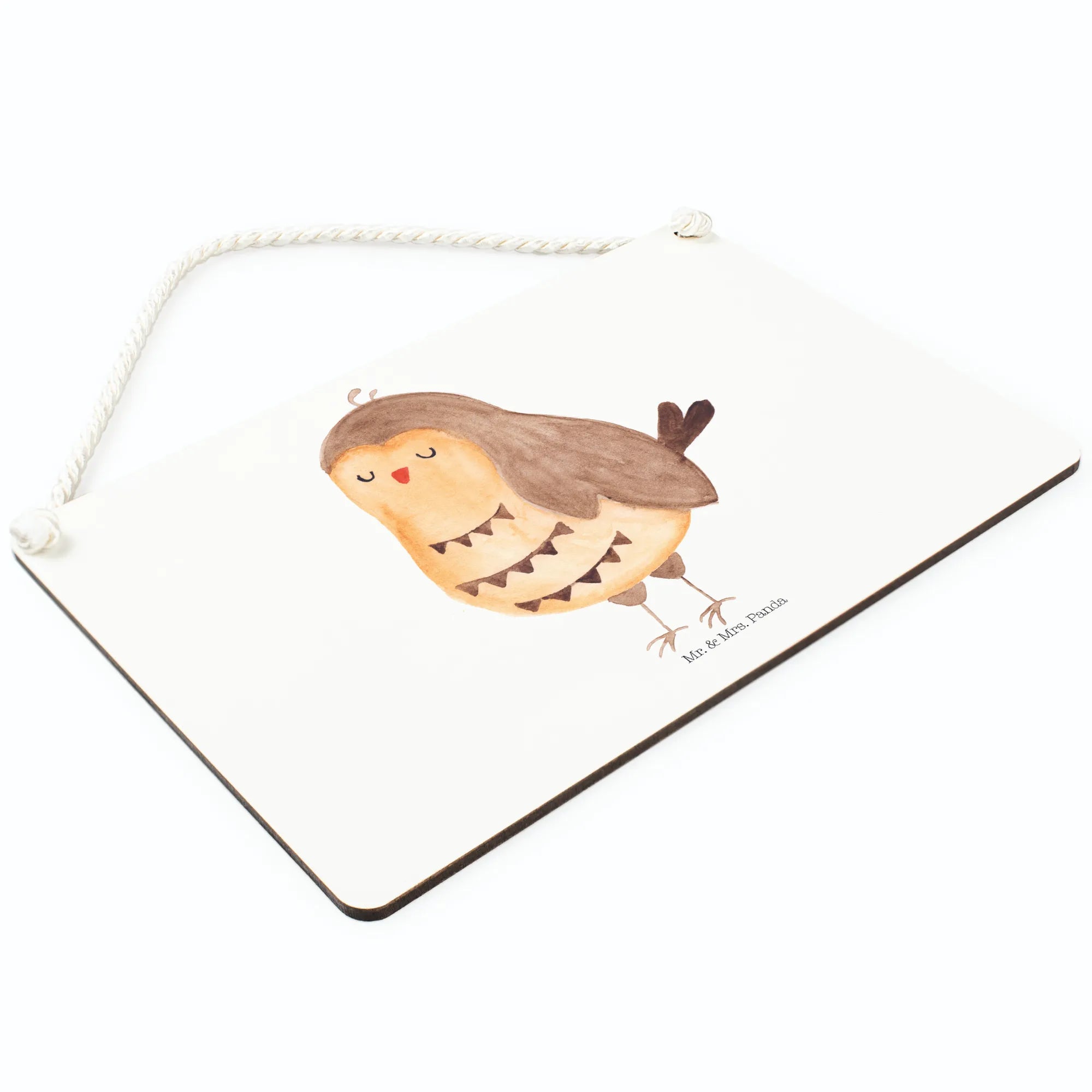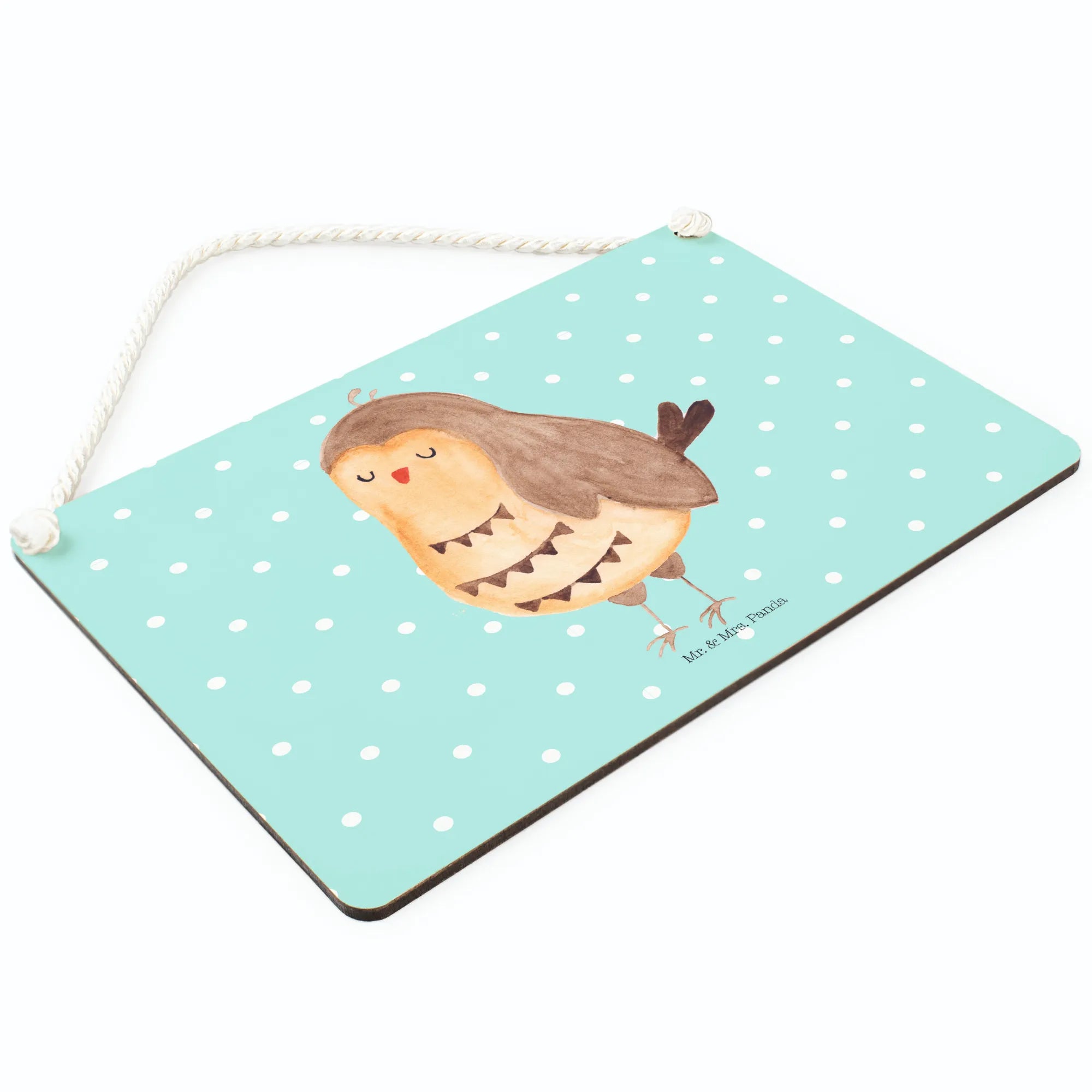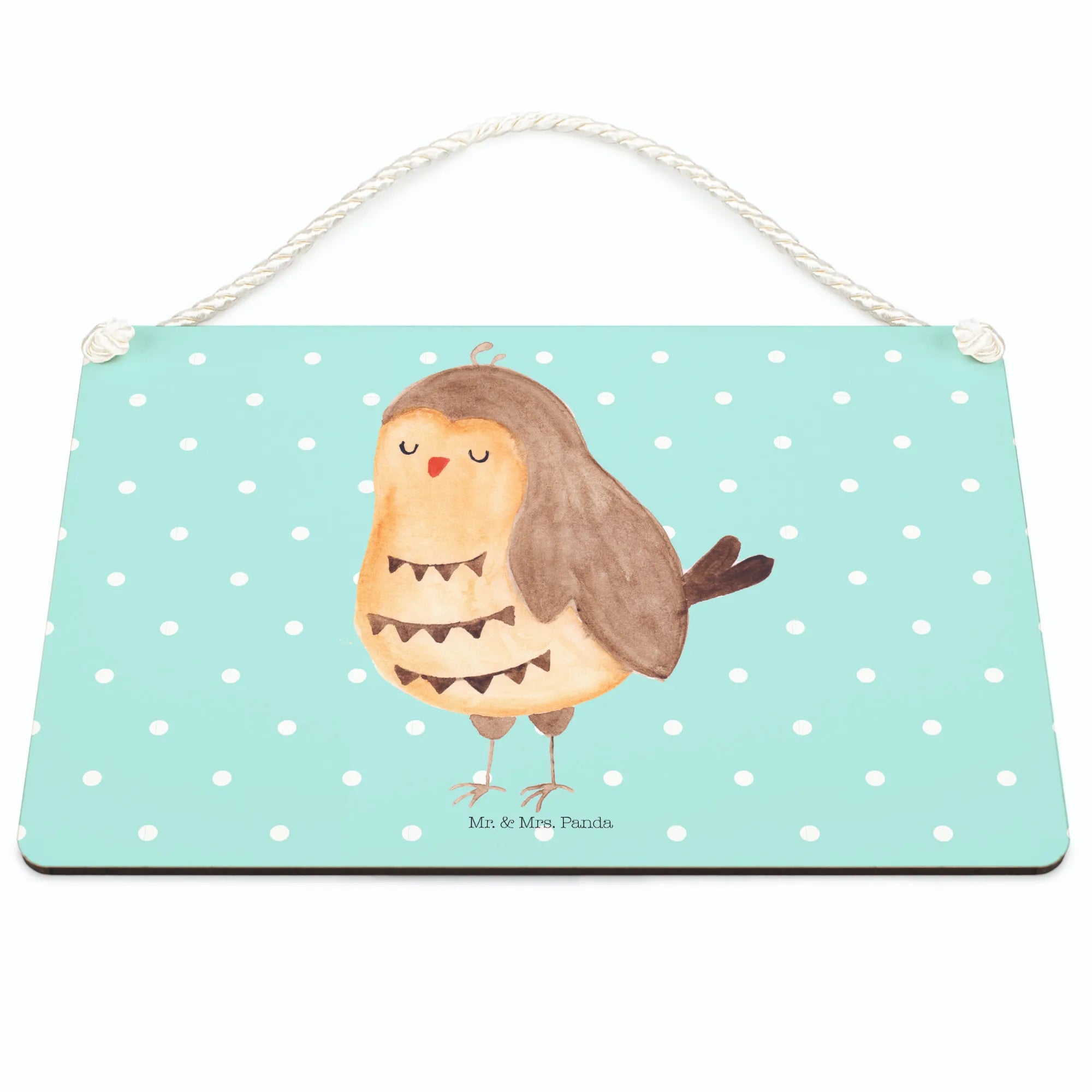 Dekoracyjny znak sowa zadowolona - z napisem - pastelowy turkus