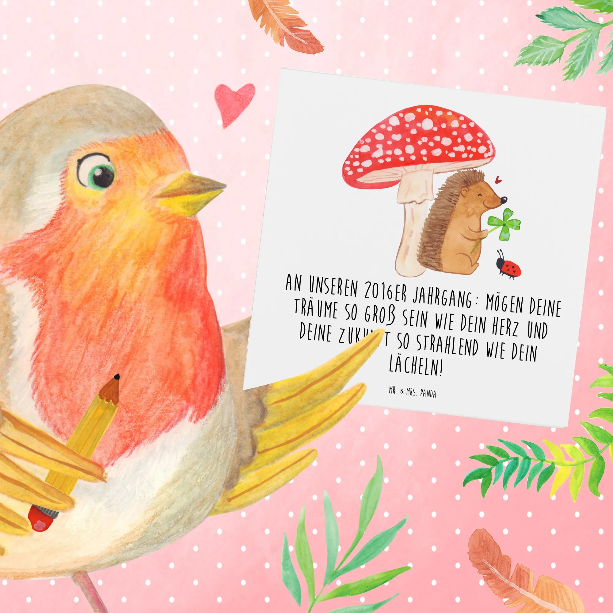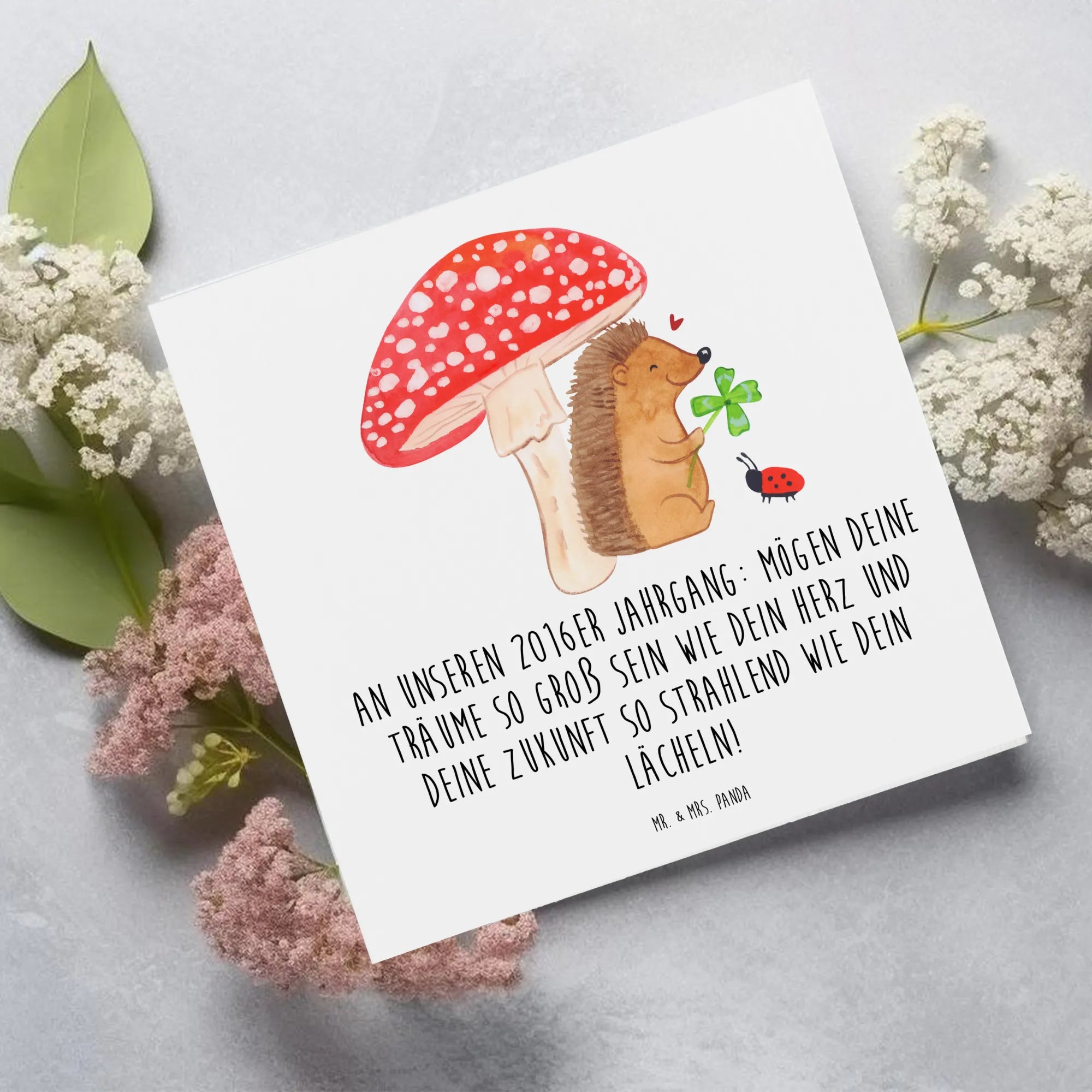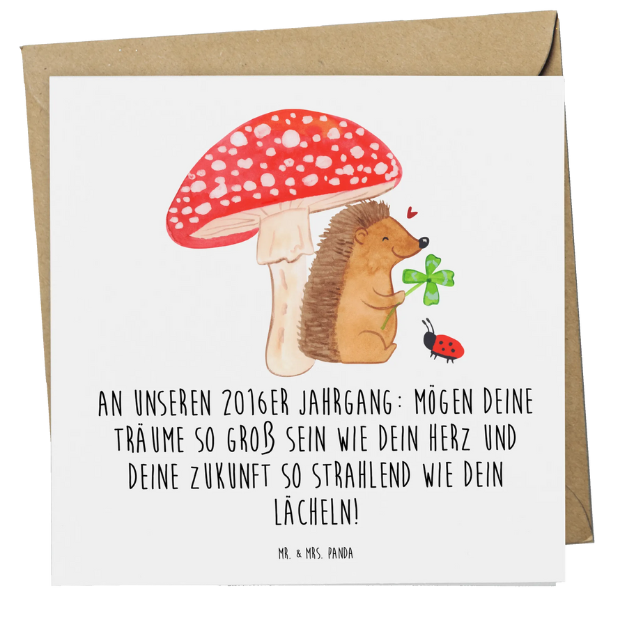 Die Deluxe Karte '2016 Geburtstag' aus der zauberhaften Sammlung von Mr. & Mrs. Panda ist nicht nur eine Karte, sondern ein ganz besonderes Geschenk. Diese hochwertige, quadratische Karte begeistert mit ihrem liebevollen Design und einem inspirierenden Spruch: 'An unseren 2016er Jahrgang: Mögen deine Träume so groß sein wie dein Herz und deine Zukunft so strahlend wie dein Lächeln!' Ein perfektes Geschenk für all jene, die im Jahr 2016 das Licht der Welt erblickt haben!
