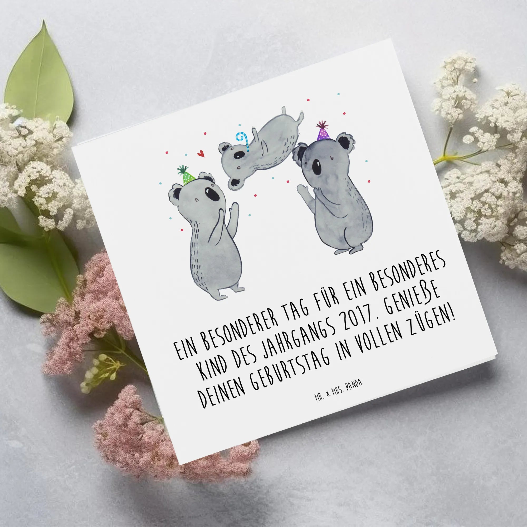 Mit einem liebevoll handgezeichneten Motiv und dem fröhlichen Slogan "Ein besonderer Tag für ein besonderes Kind des Jahrgangs 2017. Genieße deinen Geburtstag in vollen Zügen!" sorgt diese Karte für strahlende Gesichter und unvergessliche Erinnerungen.