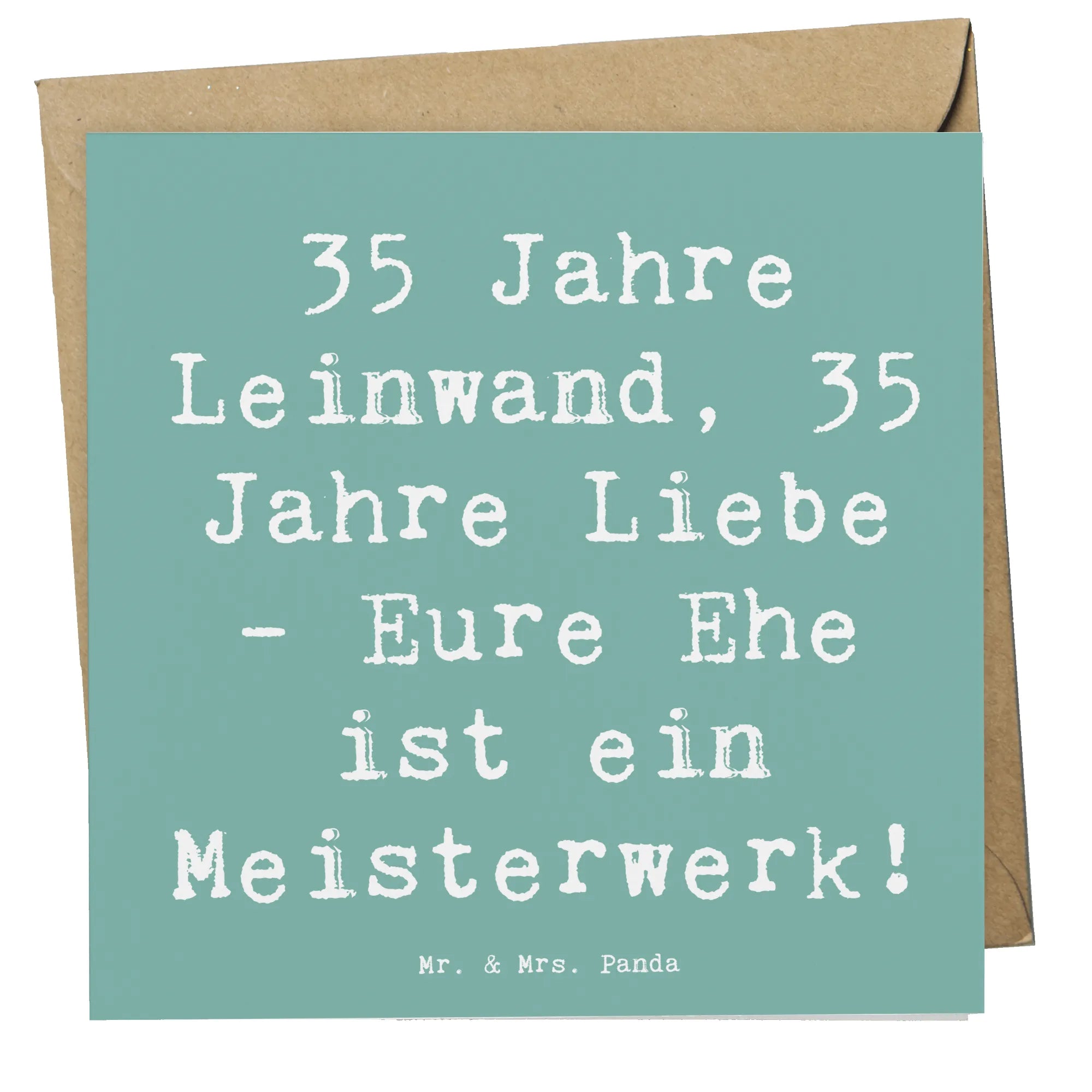 Suchst du die perfekte Karte zum 35. Hochzeitstag? Unsere Deluxe Karte „35. Hochzeitstag – Leinwandhochzeit“ aus der Mr. & Mrs. Panda Hochzeitskollektion ist die liebevolle Art, 35 gemeinsame Jahre zu feiern. Mit dem herzlichen Slogan „35 Jahre Leinwand, 35 Jahre Liebe - Eure Ehe ist ein Meisterwerk!“ auf einem sanften Meeresbrise-Hintergrund wird diese Karte garantiert zu einem besonderen Moment. ❤️
