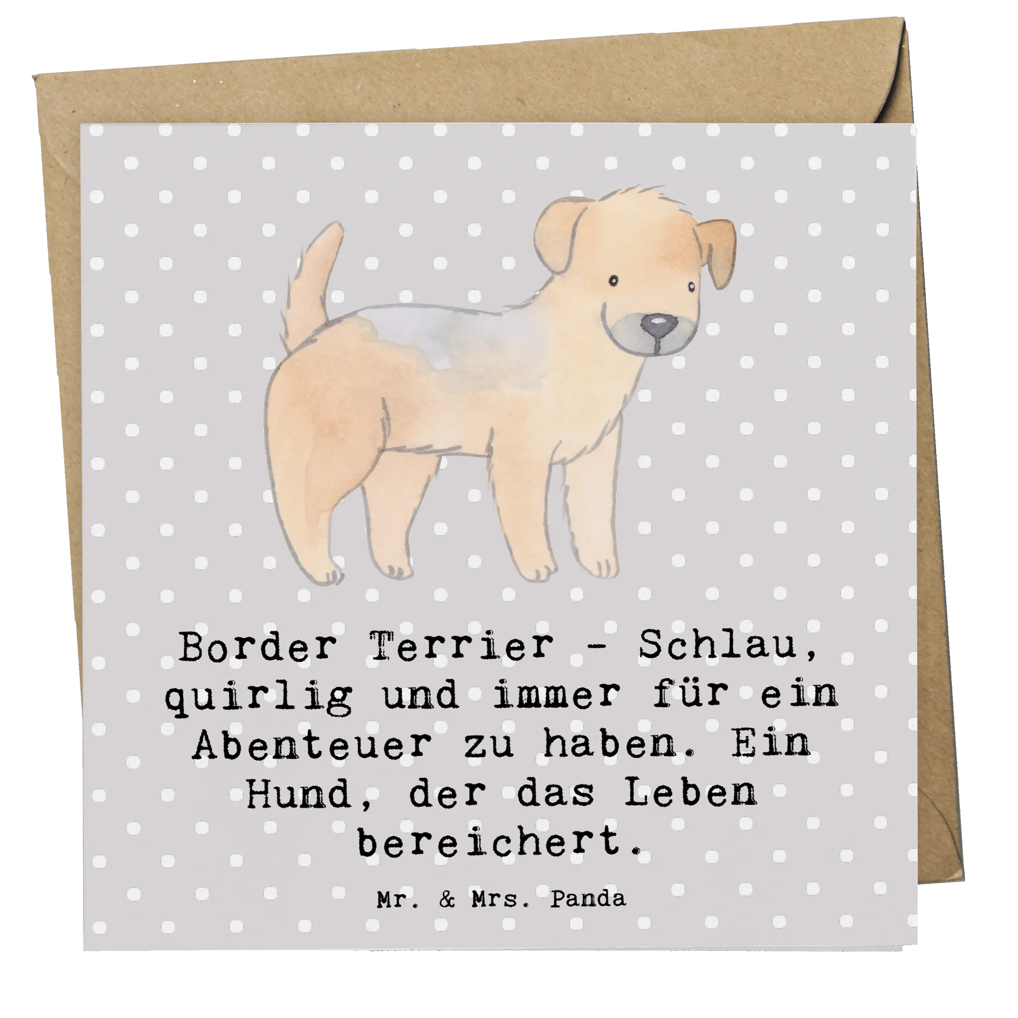 Die Deluxe Karte "Border Terrier" von Mr. & Mrs. Panda ist das perfekte Geschenk für alle Hundefreunde und Liebhaber dieser wundervollen Hunderasse. Mit einem charmanten Motiv und einem liebevollen Spruch, der die besonderen Eigenschaften des Border Terriers beschreibt – "Schlau, quirlig und immer für ein Abenteuer zu haben. Ein Hund, der das Leben bereichert." – ist diese Karte ideal für verschiedenste Anlässe.