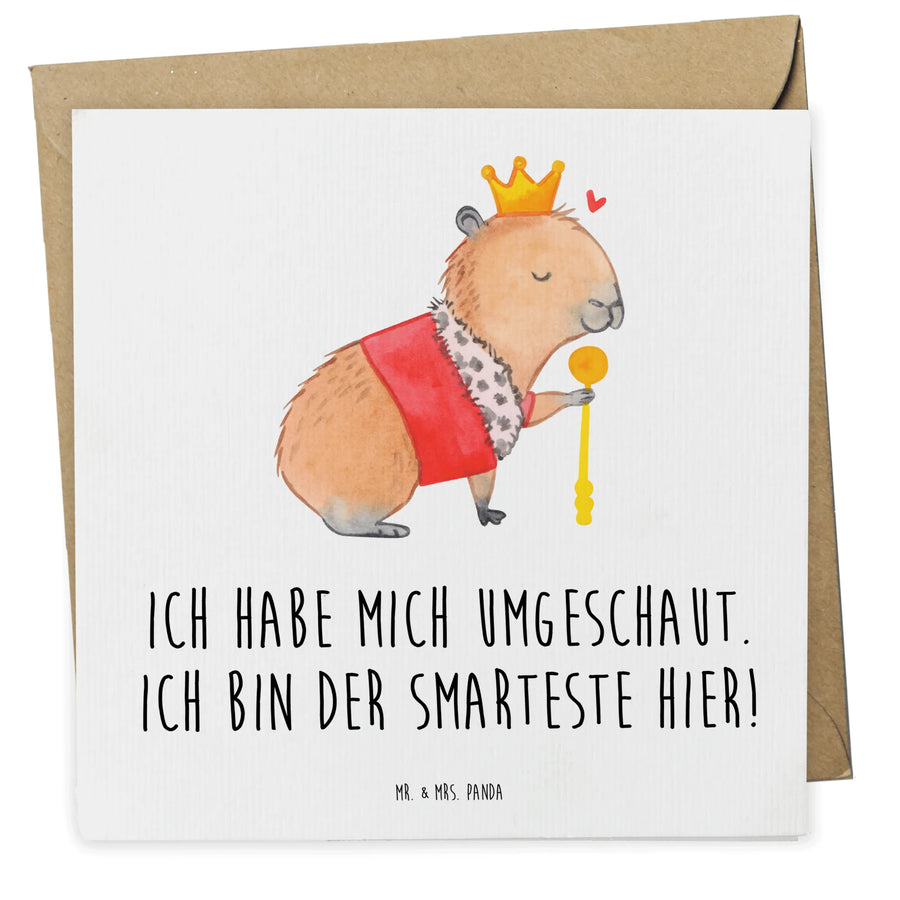 Ein wenig Humor wird durch den Spruch "Ich habe mich umgeschaut. Ich bin der Smarteste hier!" mitgeliefert, der selbst die bedrückendsten Momente auflockert. Der royale Capybara ist zudem nicht nur süß, sondern symbolisiert auch Wärme und Freundschaft – perfekt für deine individuellen Grüße und Glückwünsche an Freunde, Familie oder Kollegen.