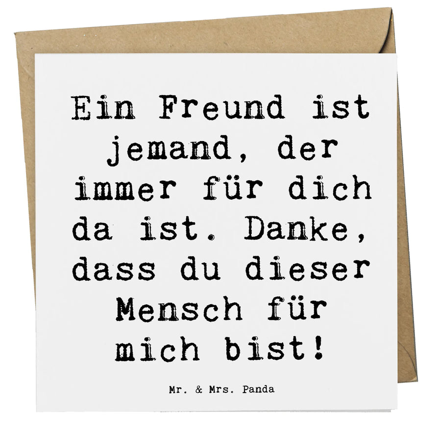 Die Deluxe Karte Freund aus der Danke-Kollektion von Mr. & Mrs. Panda ist das perfekte Geschenk für jeden Anlass. Diese hochwertige, quadratische Karte, hergestellt aus 300 Gramm Karton, bietet nicht nur eine wunderschöne Optik, sondern auch eine aussagekräftige Botschaft: "Ein Freund ist jemand, der immer für dich da ist. Danke, dass du dieser Mensch für mich bist!"
