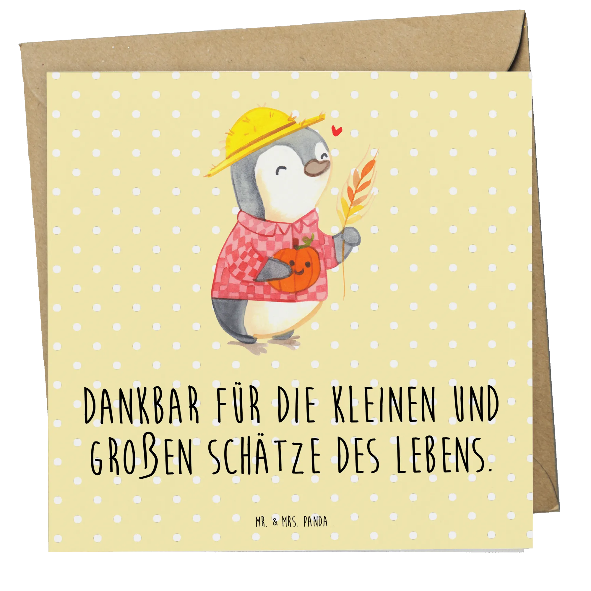 Entdecke die Deluxe Karte zum Erntedankfest & Thanksgiving von Mr. & Mrs. Panda – das perfekte Geschenk für Freunde und Familie! Diese wunderschöne und besonders hochwertige quadratische Karte aus hochwertigem 300 Gramm Karton ist ein wahres Schmuckstück in Deiner Grußkarten-Sammlung. Mit einem liebevoll handgezeichneten Motiv, das die Essenz des Erntedankfestes einfängt, ist sie ideal für sämtliche Anlässe, die Dankbarkeit und Freude zelebrieren. Ob für deinen besten Freund, die Familie oder besondere Menschen in Deinem Leben, diese Grußkarte wird die Herzen berühren.