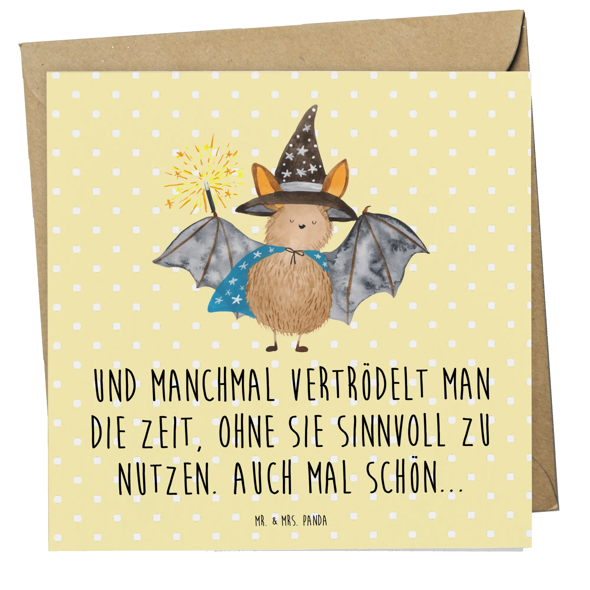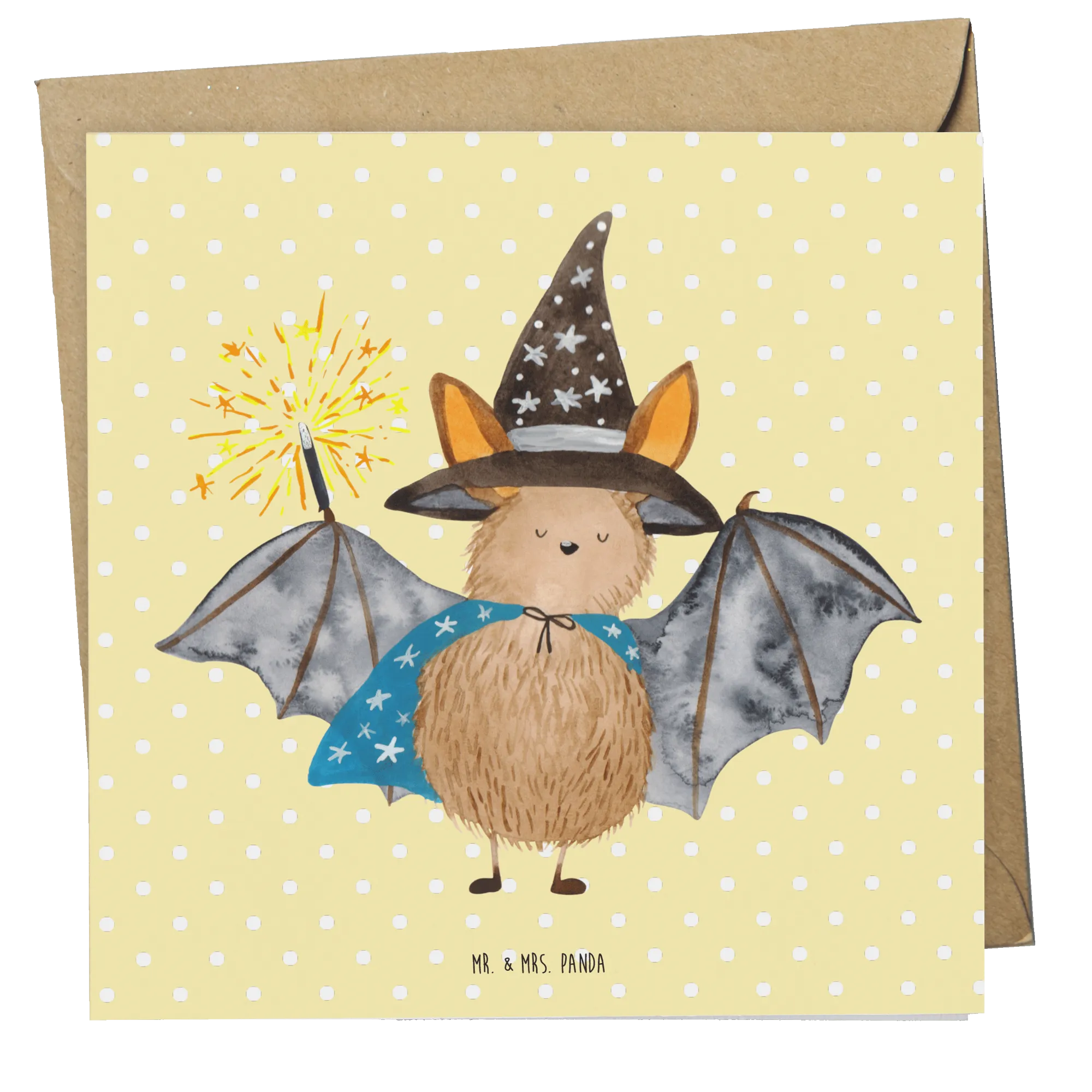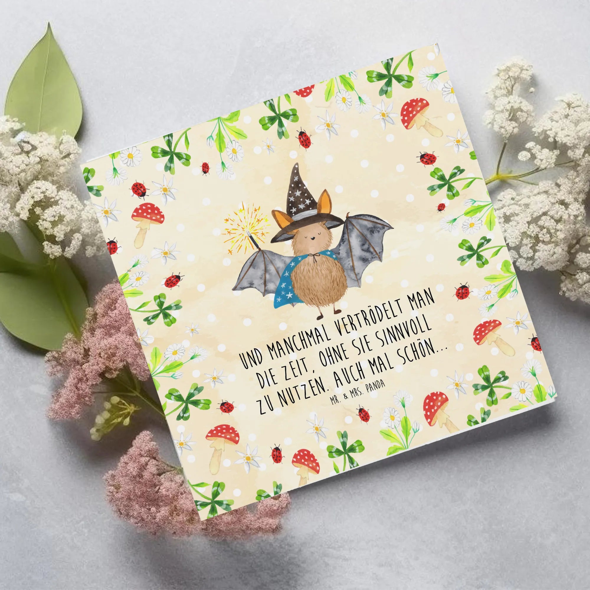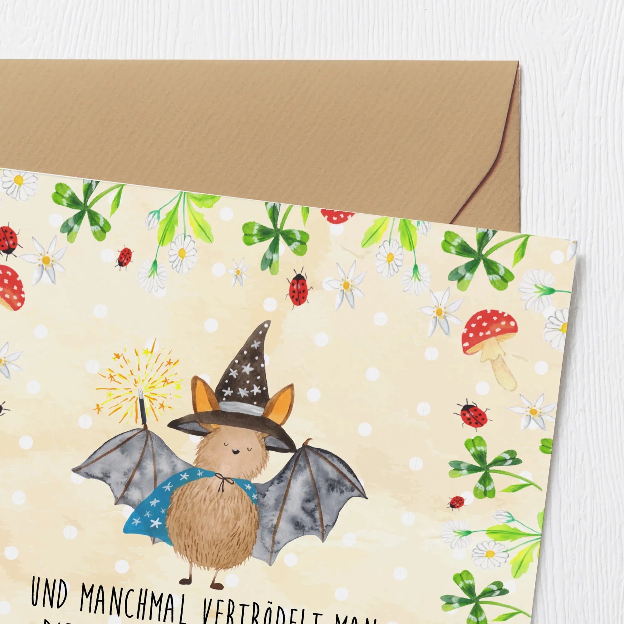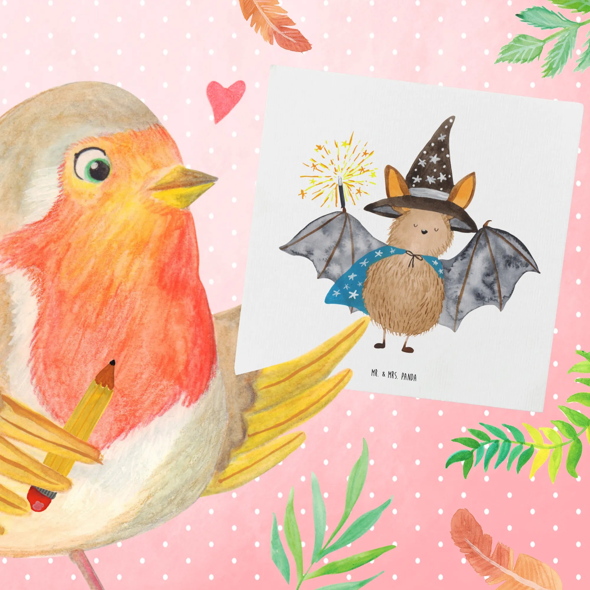 Schreib deiner besten Freundin, deinem Neffen oder deiner Cousine ein paar liebe Worte und verschicke die Karte zu einem besonderen Anlass oder einfach so - nur um zu zeigen, dass du an sie denkst. Diese "Fledermaus Zauberer" Karte ist nicht nur ein Stück Karton; sie ist ein kleiner magischer Moment, der Freude und ein Lächeln schenkt. Lass die Magie der Worte mit dieser einzigartigen Karte von Mr. & Mrs. Panda lebendig werden!