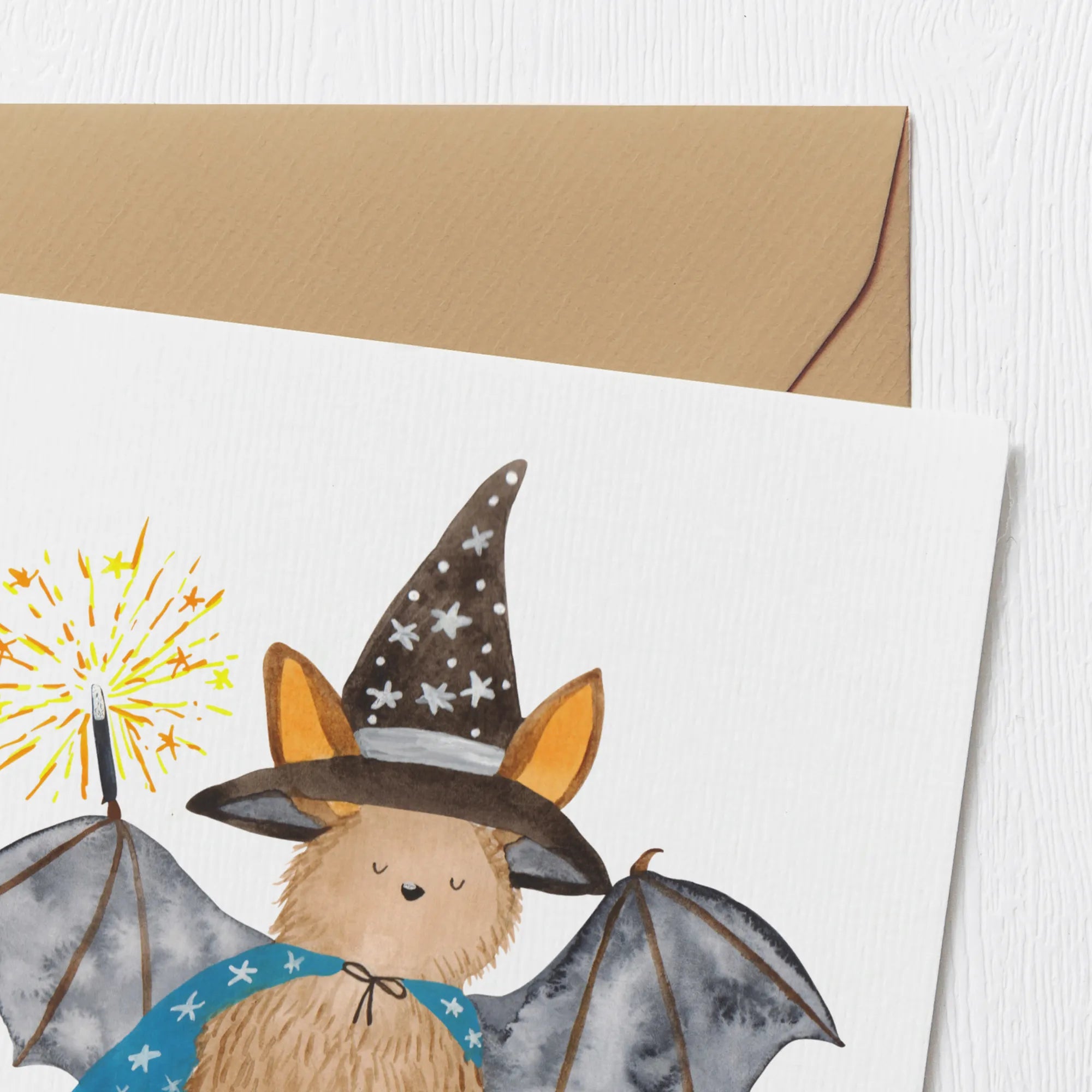 Deluxe Karte Fledermaus Zauberer - mit Spruch - Weiß