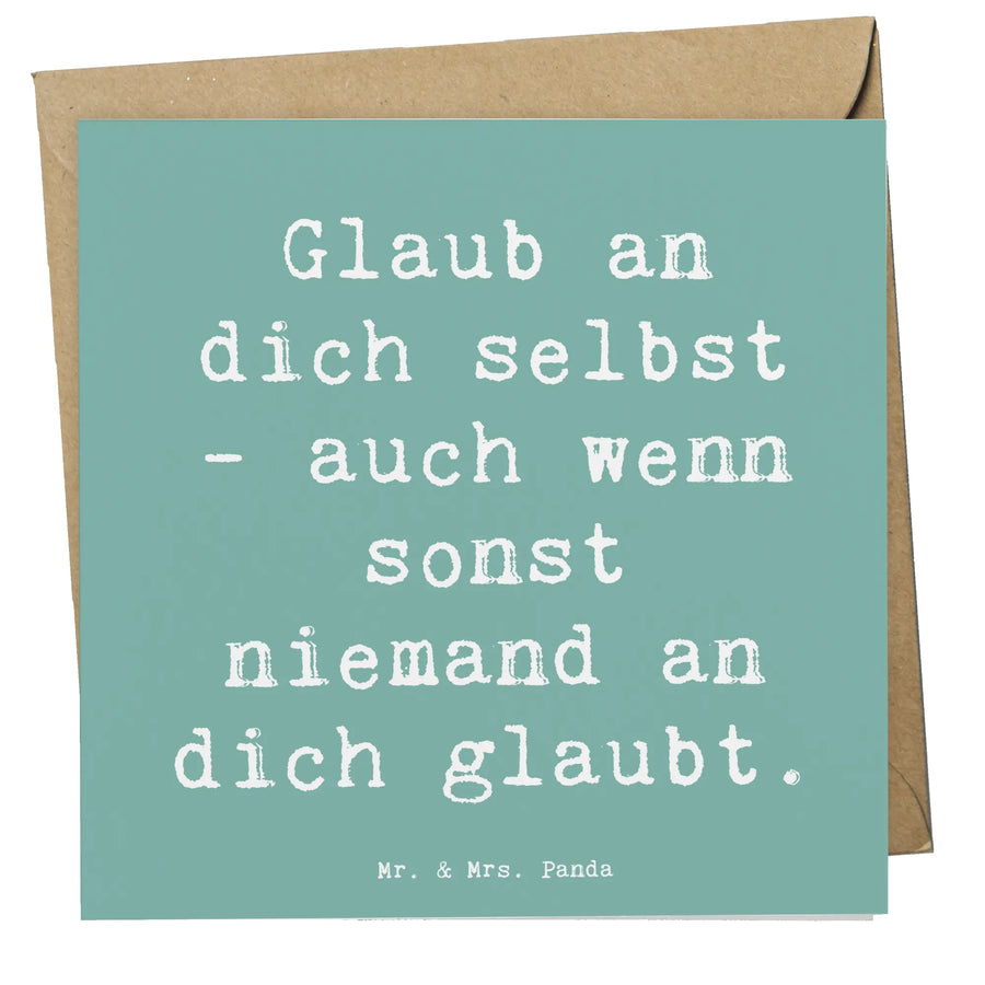 Diese Deluxe Karte mit dem kraftvollen Motiv 'Glaube an dich selbst' aus der besonderen Kollektion Gefühle & Stimmungen von Mr. & Mrs. Panda ist das perfekte Geschenk für all jene, die sich oder anderen Mut und Zuversicht schenken möchten. Besonders geeignet ist diese Karte für festliche Anlässe wie Geburtstage, Hochzeiten oder Jubiläen, da sie nicht nur schöne Worte enthält, sondern auch mit ihrer hochwertigen Verarbeitung besticht. Mit den Maßen von 140 mm x 140 mm und dem edlen Umschlag inklusive, ist sie nicht nur ein wunderbarer Träger von persönlichen Grüßen, sondern auch ein echter Hingucker auf jedem Tisch.