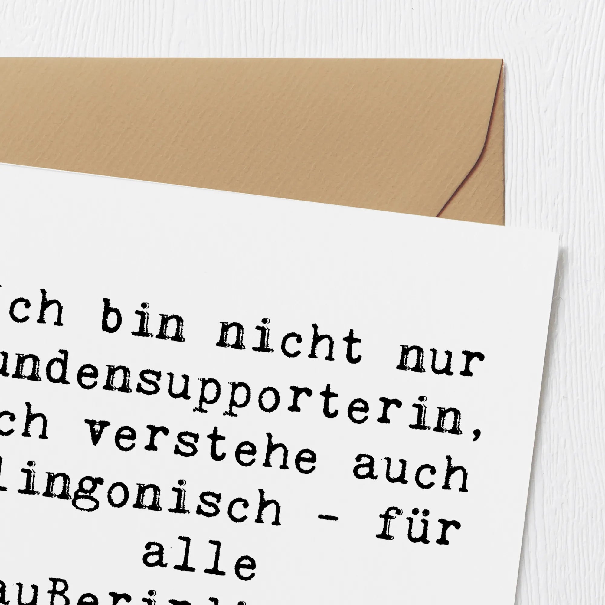 Die Deluxe Karte "Kundensupporterin" aus der einzigartigen Berufe Kollektion von Mr. & Mrs. Panda ist mehr als nur eine Karte – sie ist ein kleines Kunstwerk und eine herzliche Geste der Wertschätzung. Mit einem liebevollen Spruch, der besagt: "Ich bin nicht nur Kundensupporterin, ich verstehe auch Klingonisch - für alle außerirdischen Probleme!", bringt sie ein Lächeln auf die Gesichter der Empfänger.