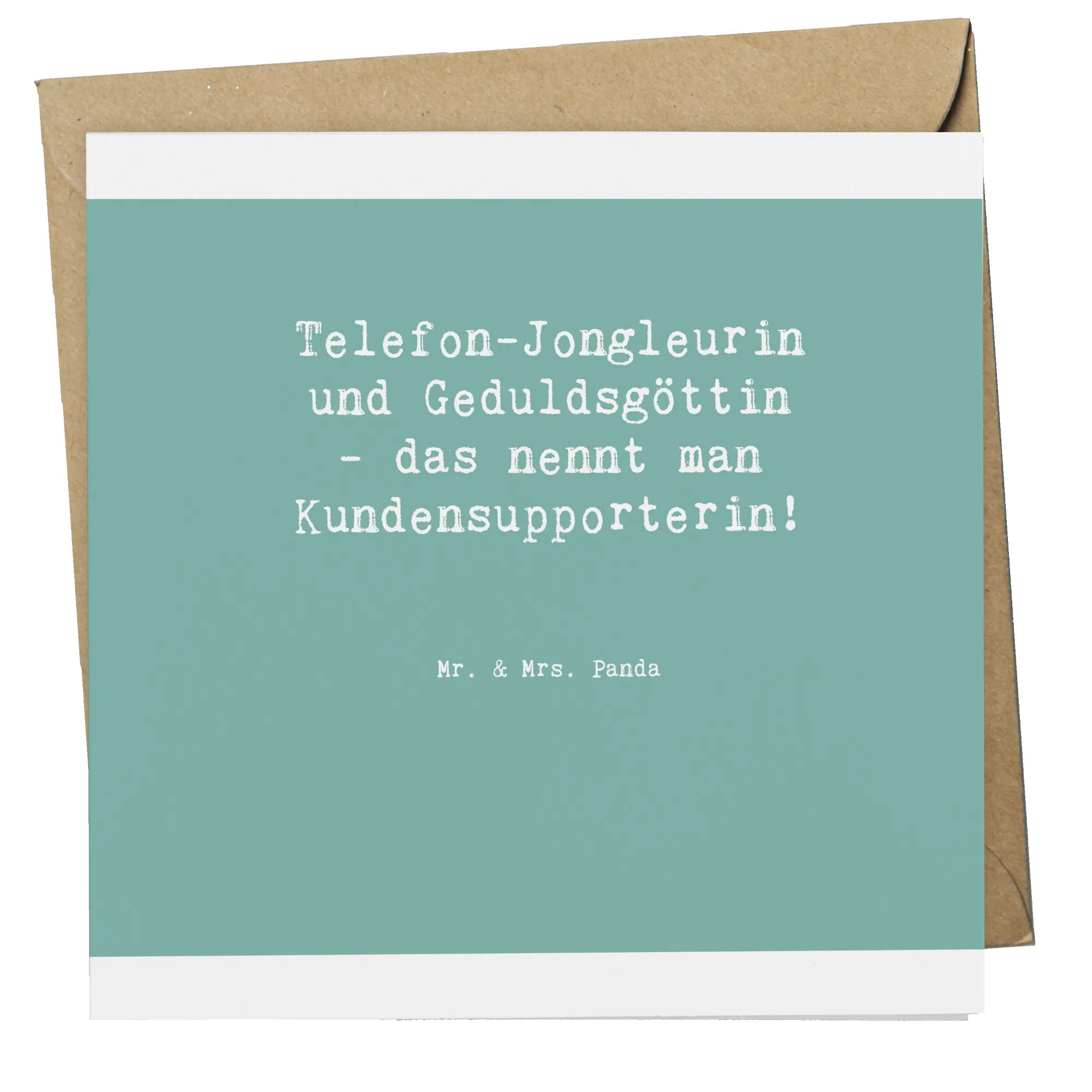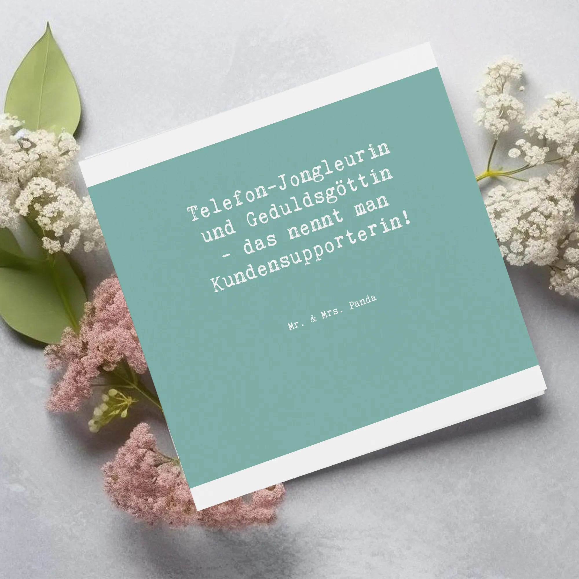 Die Deluxe Karte "Kundensupporterin" von Mr. & Mrs. Panda ist die perfekte Geschenkidee für alle, die sich im Kundenservice engagieren. Diese besonders hochwertige quadratische Klappkarte kommt mit einem liebevoll gestalteten Motiv und dem witzigen Slogan "Telefon-Jongleurin und Geduldsgöttin - das nennt man Kundensupporterin!". Mit ihren bezaubernden Illustrationen, die auf bestem 300 Gramm Karton gedruckt sind, setzt unsere Karte ein Zeichen der Anerkennung für den oft unauffälligen, aber essentiellen Beruf der Kundensupporterinnen. Sie strahlen Verständnis und Hilfsbereitschaft aus und machen sie zu einer genialen Wahl für unterschiedlichste Anlässe.