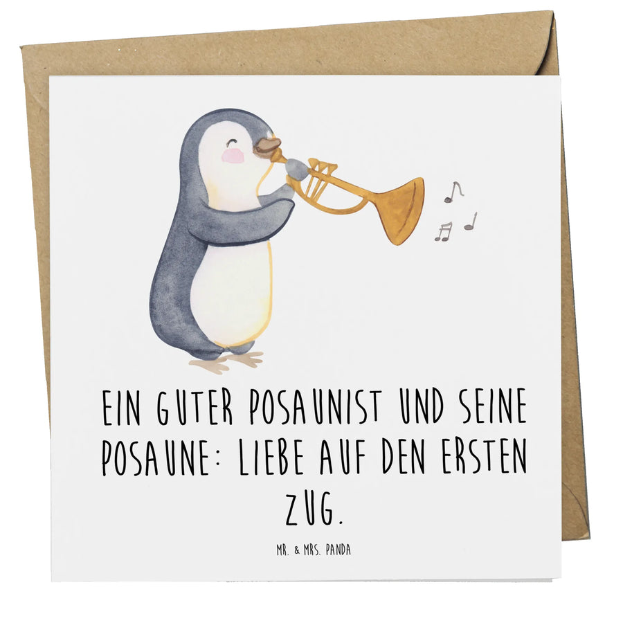 Ob zum Geburtstag, zur Hochzeit oder einfach nur, um jemandem eine Freude zu machen – diese Karte ist für jede Gelegenheit geeignet! Der liebevoll gestaltete Spruch "Ein guter Posaunist und seine Posaune: Liebe auf den ersten Zug" spricht die Herzen der Musikfans an und verwandelt die Karte in ein ganz besonderes Mitbringsel.