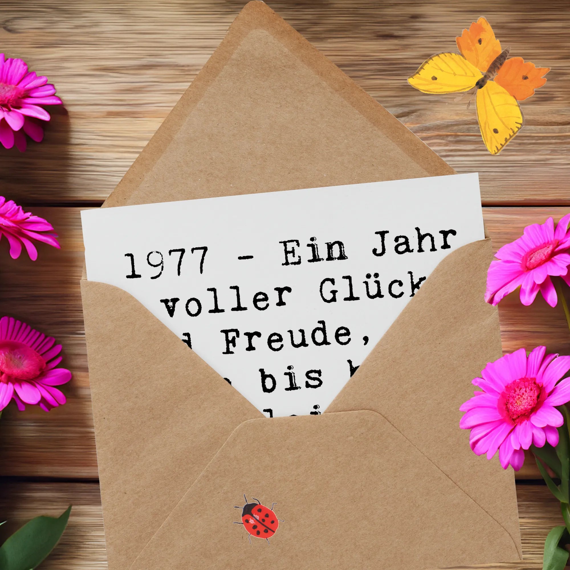 Warum diese Grußkarte das ideale Geschenk ist: Sie passt wunderbar zu Geburtstagsgeschenken rund um das Geburtsjahr 1977 und ist eine liebevolle Ergänzung zu jedem Präsent. Ob als Geburtstagskarte 1977, Glückwunschkarte 1977 oder Grußkarte 1977 – diese Karte sorgt für einen unvergesslichen Moment beim Auspacken.