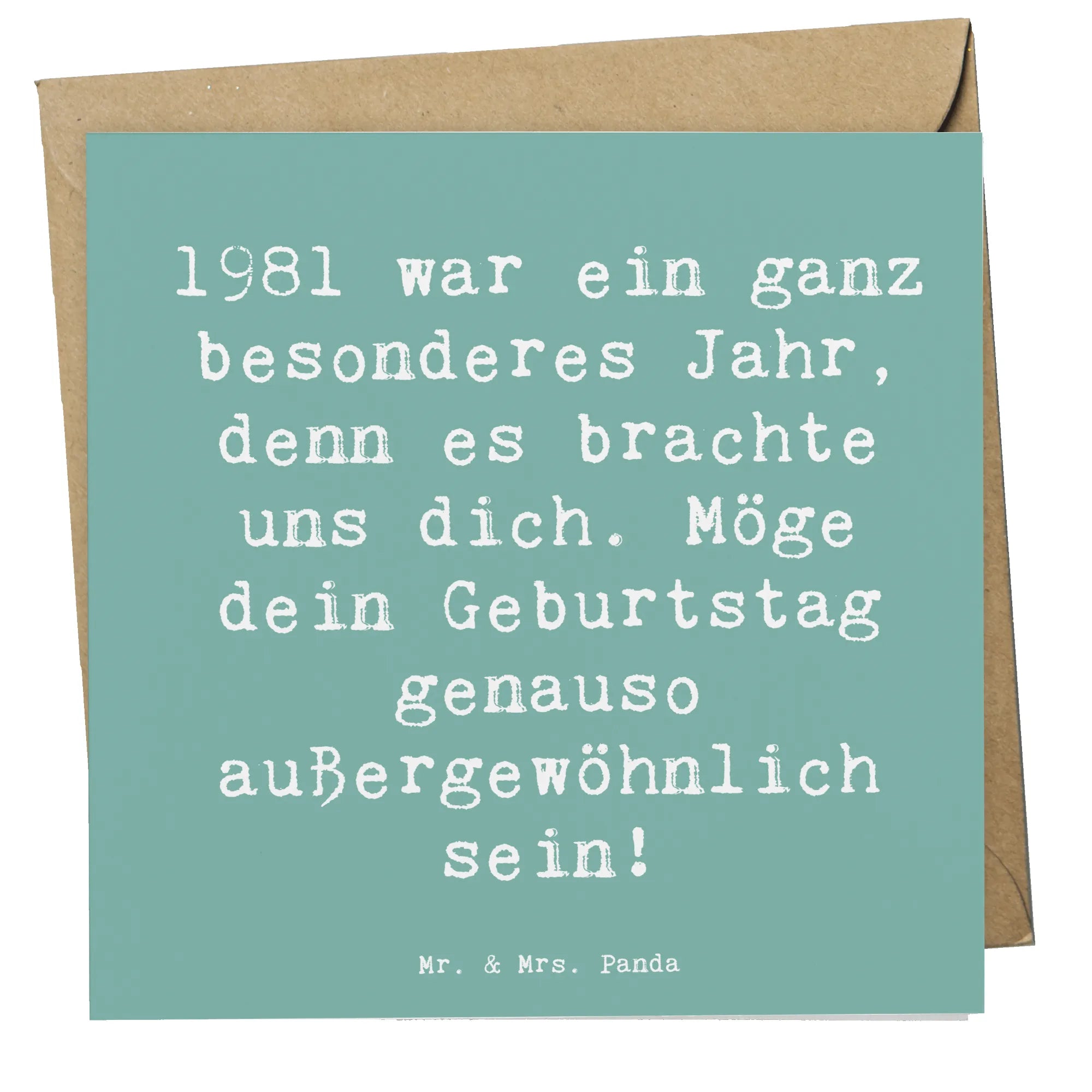 Mit dem liebevollen Spruch: "1981 war ein ganz besonderes Jahr, denn es brachte uns dich. Möge dein Geburtstag genauso außergewöhnlich sein!" ist diese Karte ideal für jeden, der seinen Geburtstag gebührend feiern möchte.