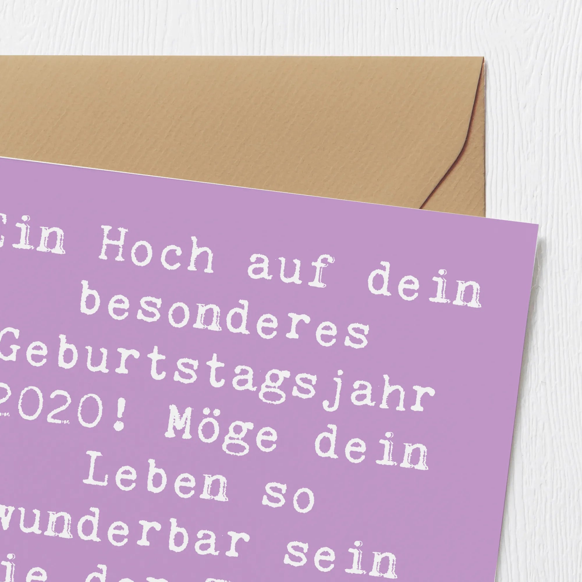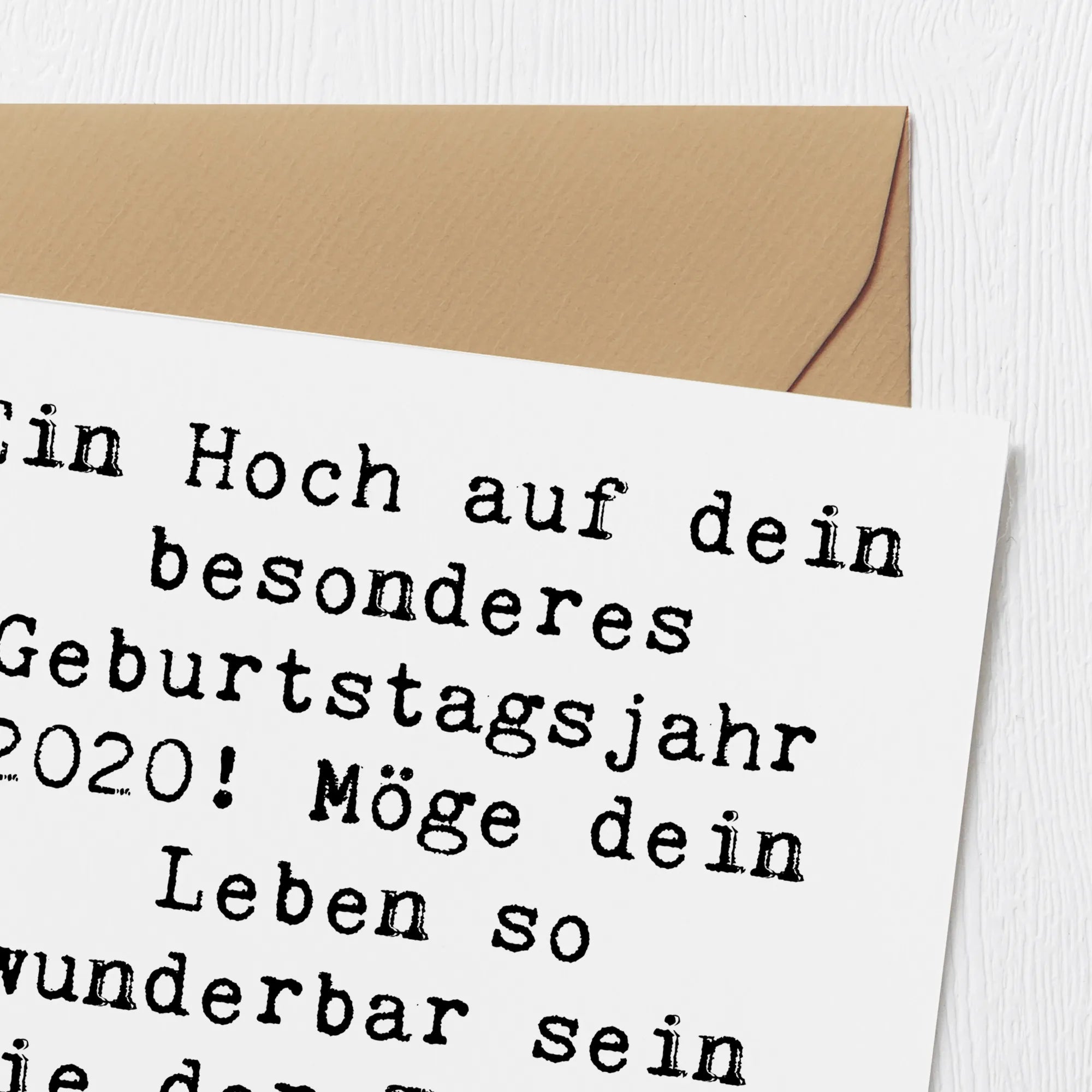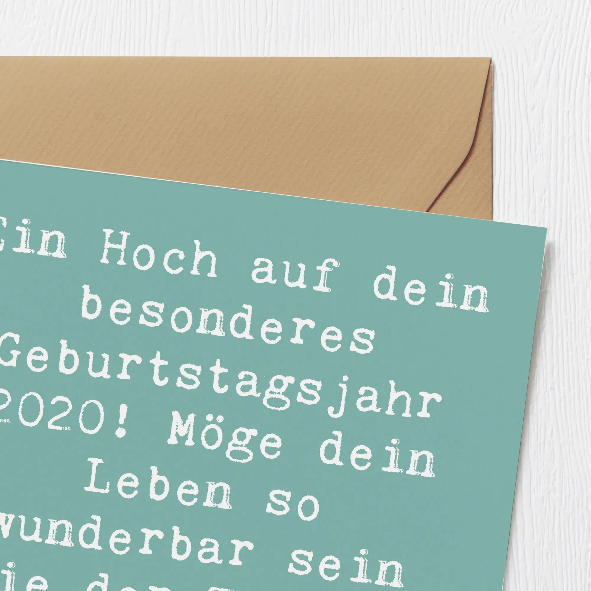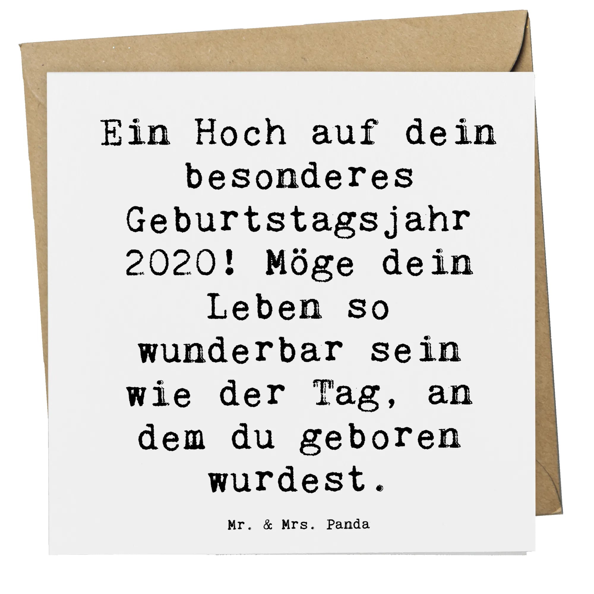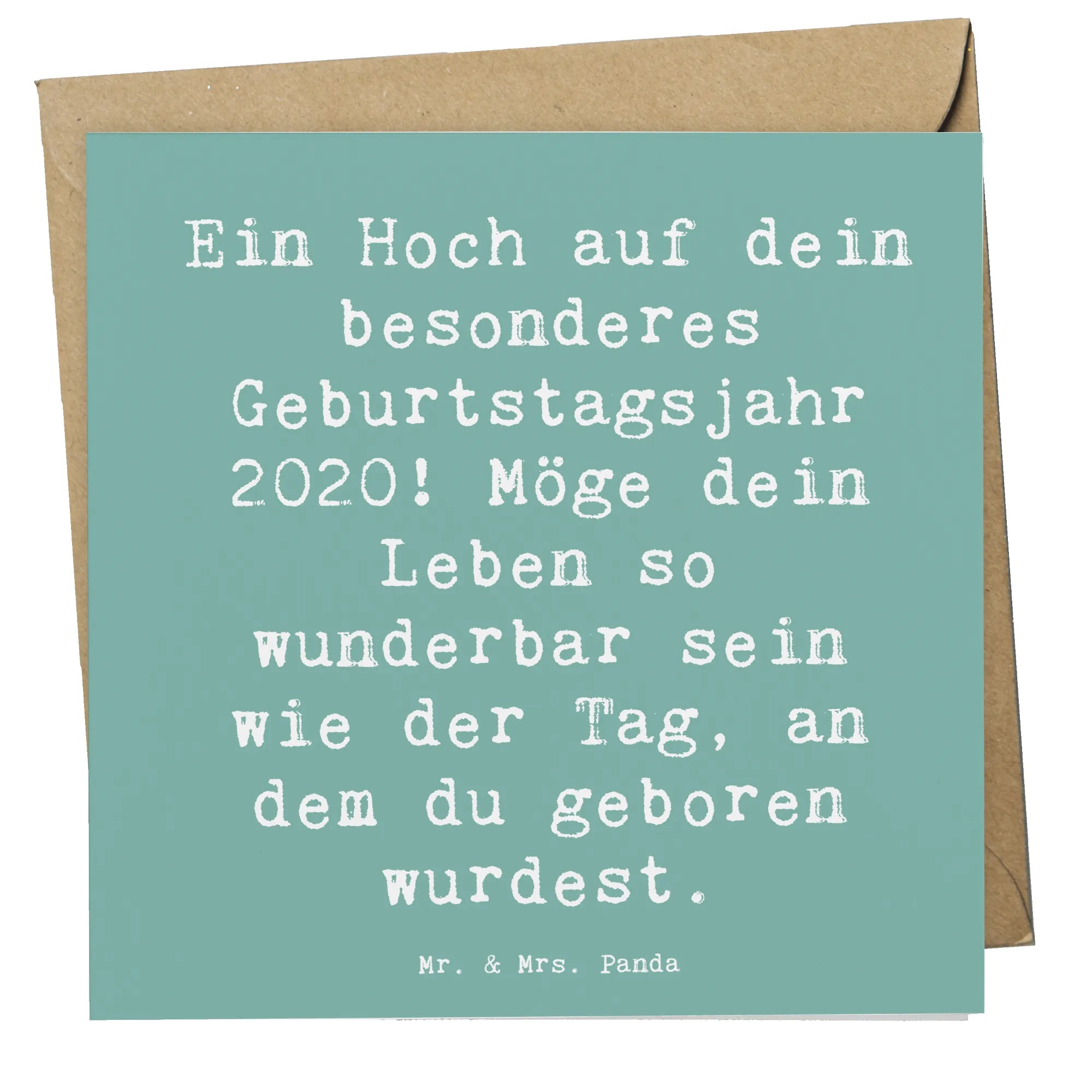 Die Deluxe Karte 2020 Geburtstag aus der besonderen Sammlung Geburtstag Geburtsjahr von Mr. & Mrs. Panda ist das perfekte Geschenk für alle, die einen besonderen Geburtstag feiern. Diese hochwertige Grußkarte ist für all jene gedacht, die in 2020 ihren Ehrentag haben und ein ganz besonderes Zeichen der Wertschätzung verdienen. Mit dem zauberhaften Spruch: "Ein Hoch auf dein besonderes Geburtstagsjahr 2020! Möge dein Leben so wunderbar sein wie der Tag, an dem du geboren wurdest." bringt sie sofort gute Laune und zeigt, wie sehr man den Geburtstagskindern am Herzen liegt.